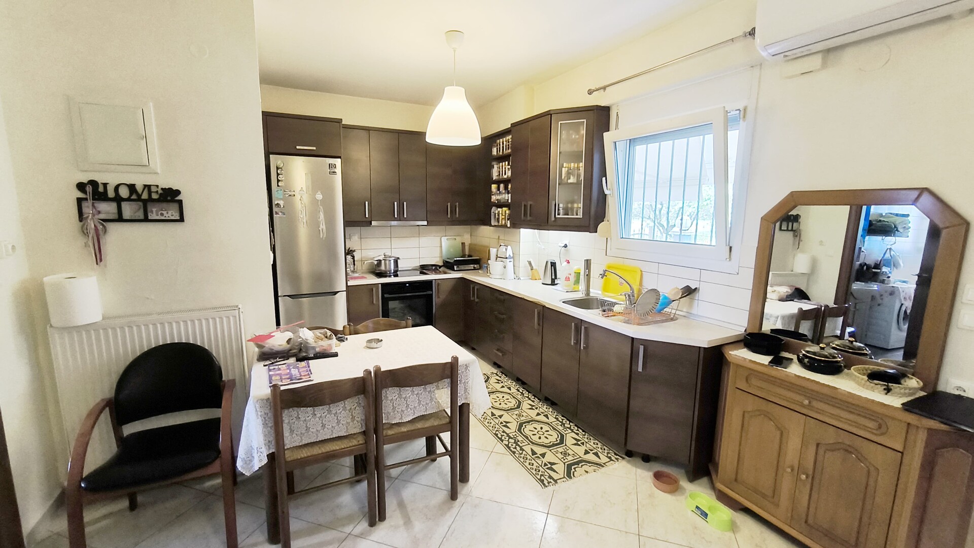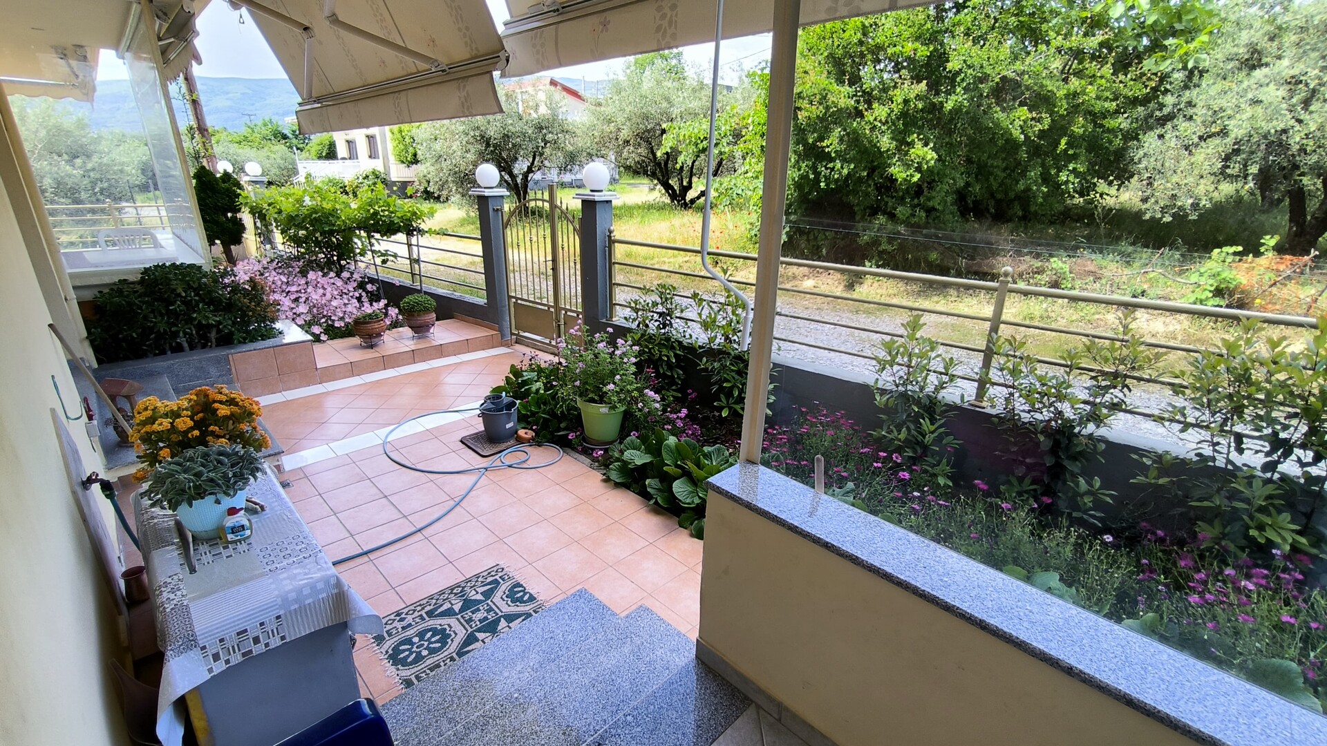 Продается квартира площадью 45 кв.м на Олимпийской Ривьере. Квартира расположена на полу-первом этаже и состоит из одной спальной комнаты, гостиной с кухней, одной ванной комнаты. Квартира имеет угловое расположение. Из окон открывается вид на горы, на город. У объекта есть солнечные батареи для нагрева воды, кондиционер, тенты, отопление. Недвижимость продается с мебелью. В здании нет лифта.