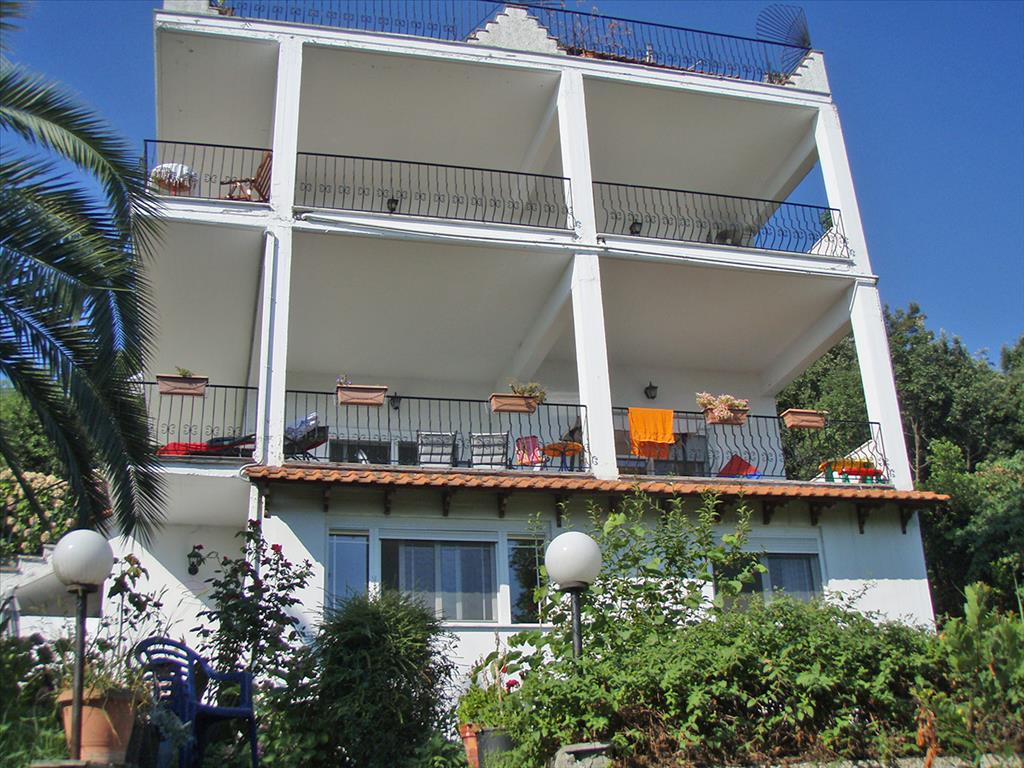 Предлагаем Вашему вниманию великолепную виллу недалеко от живописного городка Олимпийской Ривьеры. Вилла состоит из трёх этажей и её площадь составляет 452 кв.м. На первом этаже расположены просторная гостиная с камином, кухня и санузел с душевой. Второй этаж состоит из четырёх спальных комнат, гостиной с кухней и двух санузлов. На третьем этаже находятся две спальные комнаты, гостиная с кухней и санузел с душевой. А также, имеется большая веранда с баром, с которой открывается великолепный вид на Эгейское море и древнюю крепость. Дом полностью меблирован, и в нём установлены два камина, кухонная мебель, встроенные шкафы и отопление на солярке. К вилле прилегает земельный участок площадью 1000 кв.м с ухоженным садом.