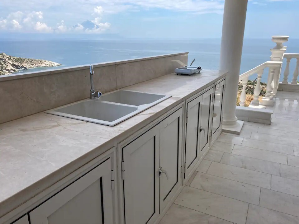 Продается 3-этажный коттедж площадью 215 кв.м на полуострове Ситония, региона Халкидики. Первый этаж состоит из одной спальной комнаты, гостиной с кухней, гостиной, одной душевой комнаты, одной сауны, джакузи. Второй этаж состоит из одной спальной комнаты, гостиной с кухней, одного санузла. Третий этаж состоит из 2 спальных комнат, гостиной с кухней. Из окон открывается великолепный вид на море, на горы. У объекта есть солнечные батареи для нагрева воды, камин, кондиционер, зона барбекю, отопление. Недвижимость продается с мебелью. У объекта установлена сигнализация. К недвижимости относится парковочное место, сад. На территории расположен бассейн личного пользования.