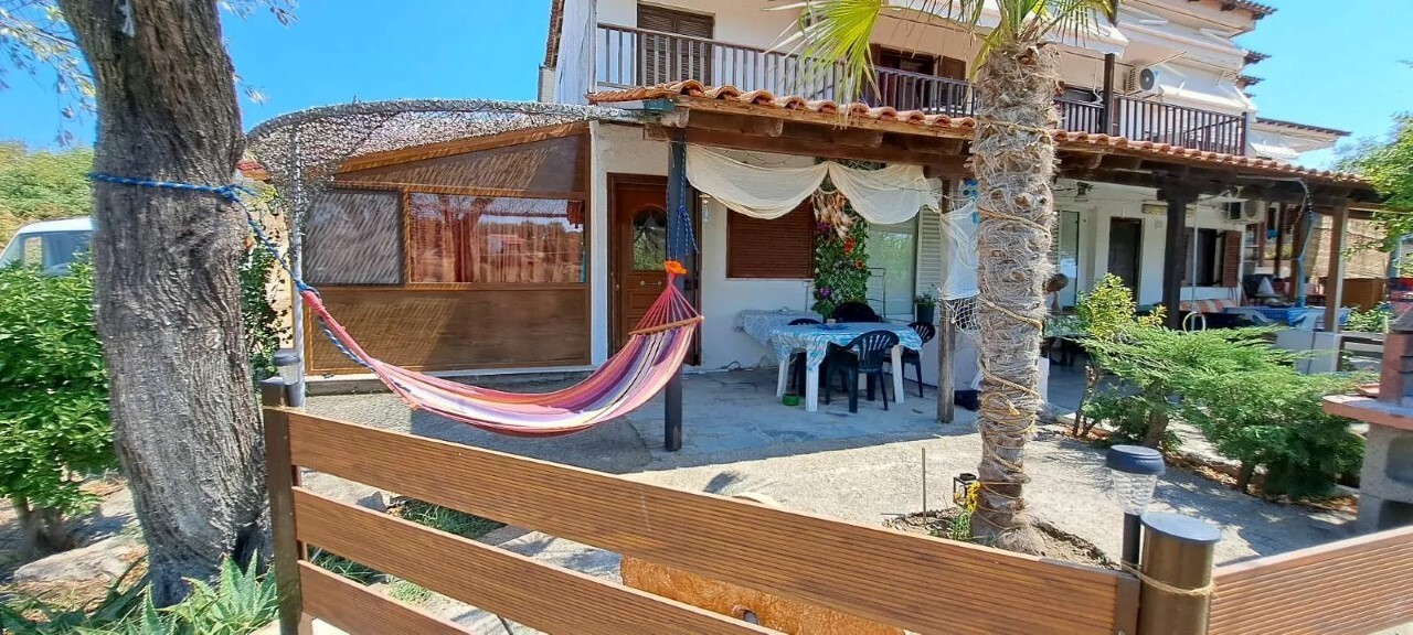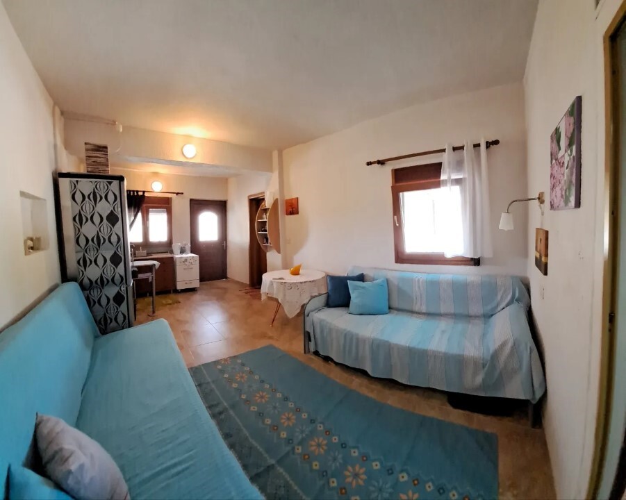 Продается квартира площадью 47 кв.м на полуострове Афон, региона Халкидики. Квартира расположена на первом этаже и состоит из одной спальной комнаты, гостиной с кухней, одной душевой комнаты. У объекта есть солнечные батареи для нагрева воды, кондиционер, отопление. Недвижимость продается с мебелью. К недвижимости относится парковочное место, сад.
