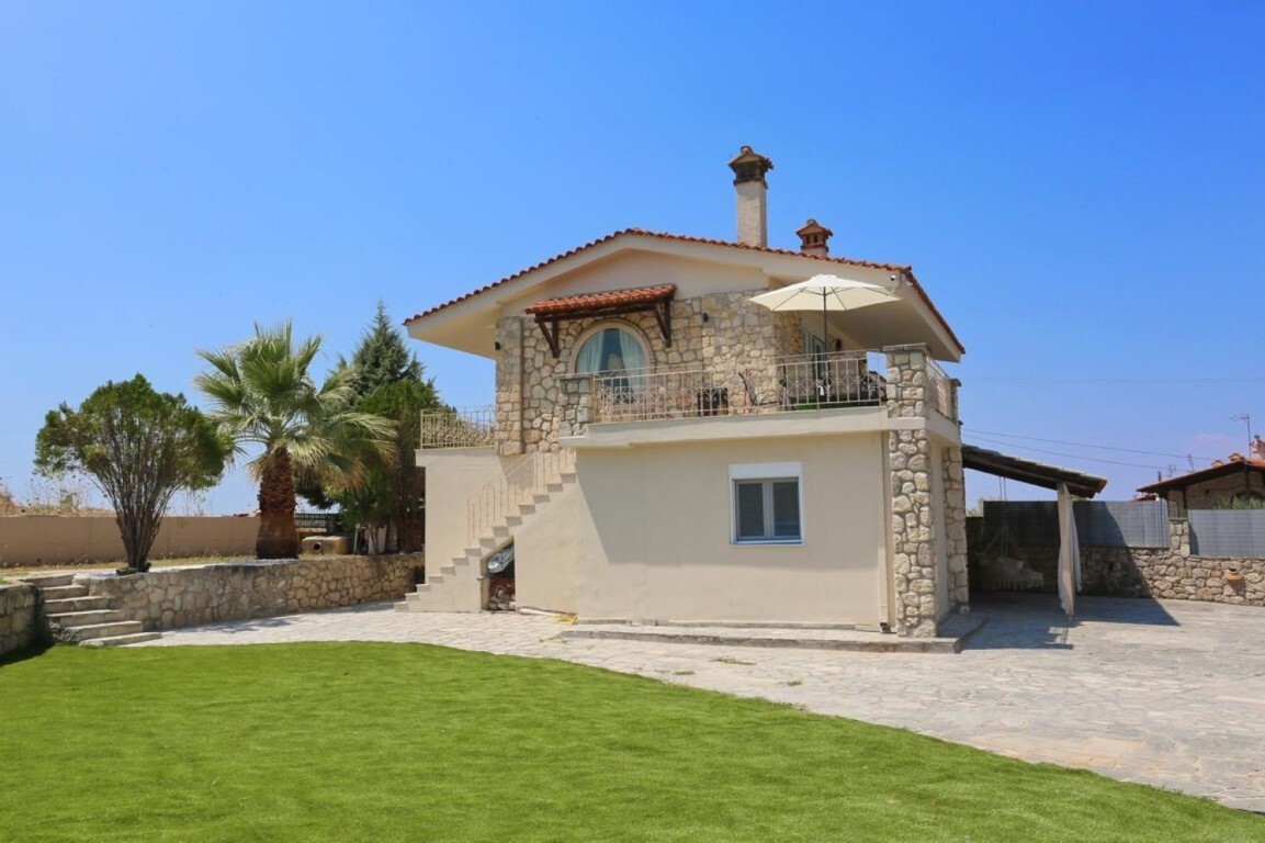 Продается 2-этажный коттедж площадью 150 кв.м на полуострове Кассандра, региона Халкидики. Первый этаж состоит из 3 спальных комнат, 3 душевых комнат. Второй этаж состоит из гостиной с кухней, одного санузла. Из окон открывается вид на лес. У объекта есть камин, кондиционер, тенты, зона барбекю, отопление. Недвижимость продается с мебелью. К недвижимости относится парковочное место.