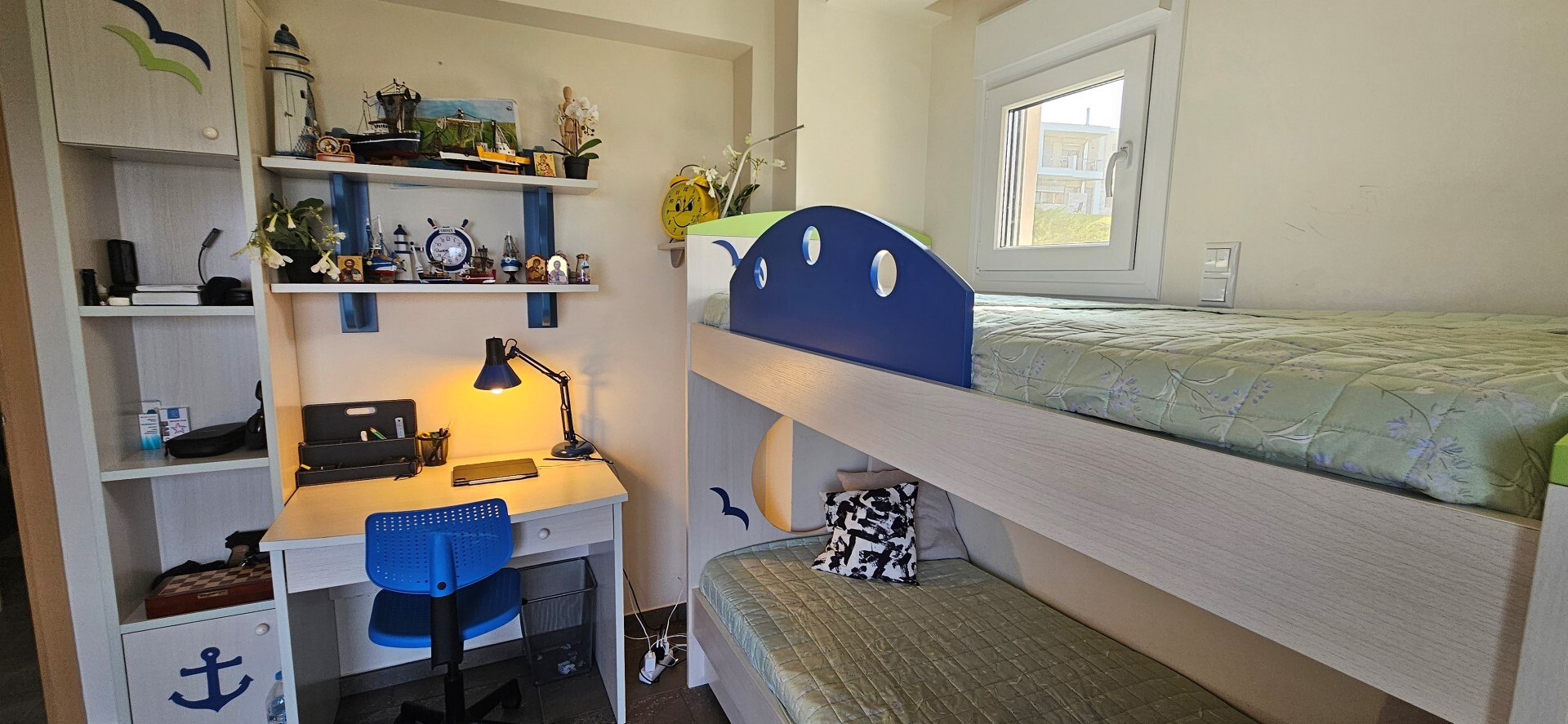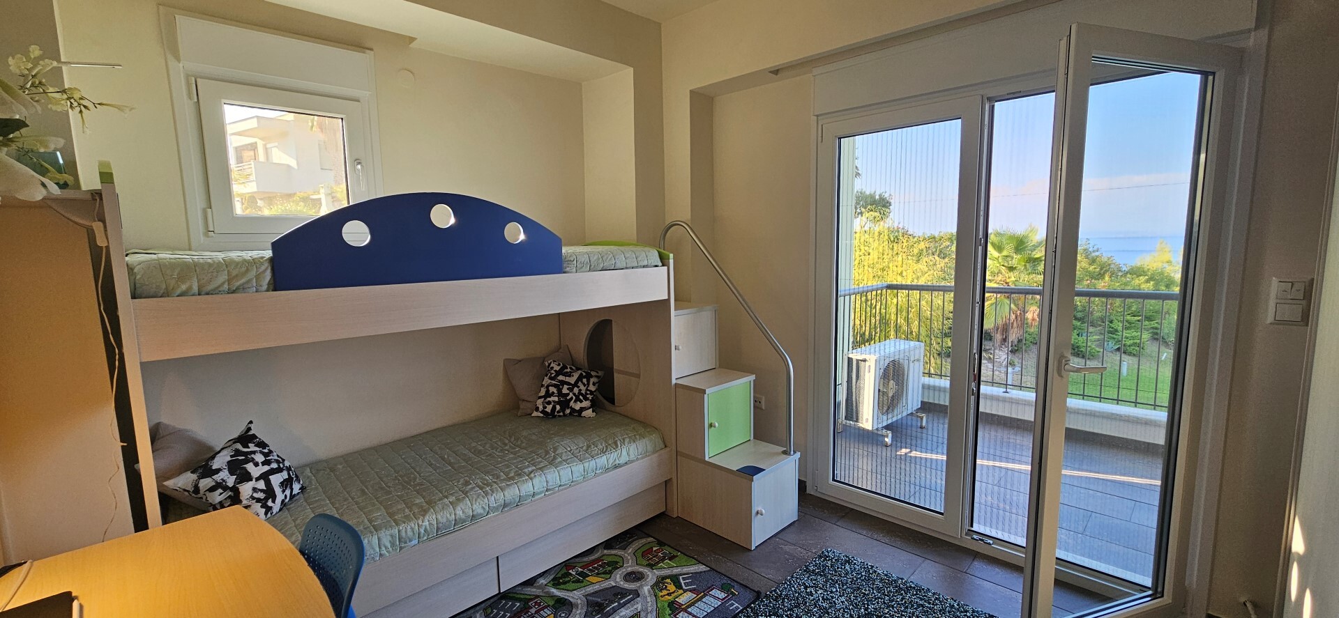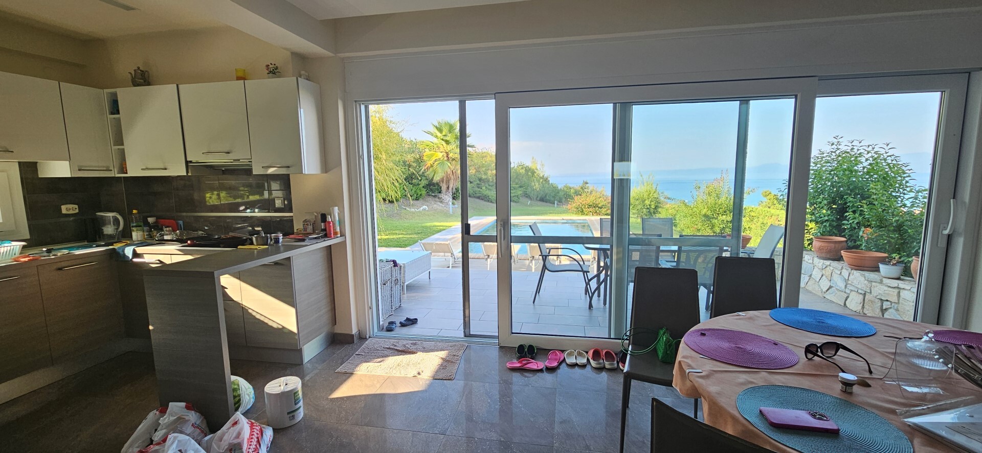 Продается 3-этажная вилла площадью 150 кв.м на полуострове Кассандра, региона Халкидики. Цокольный этаж состоит из 2 спальных комнат, гостиной, одной душевой комнаты, одной кладовой. Первый этаж состоит из гостиной с кухней. Второй этаж состоит из 3 спальных комнат, одной душевой комнаты. Из окон открывается великолепный вид на море. У объекта есть солнечные батареи для нагрева воды, камин, кондиционер, тенты, зона барбекю. Недвижимость продается с мебелью. У объекта установлена сигнализация. К недвижимости относится парковочное место. На территории расположен бассейн личного пользования.