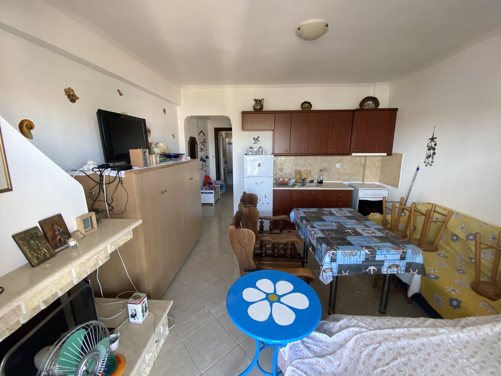 Продается квартира площадью 45 кв.м в пригороде Кавалы. Квартира расположена на третьем этаже и состоит из одной спальной комнаты, гостиной с кухней, одной душевой комнаты. Из окон открывается вид на горы, на город, на лес. У объекта есть камин, зона барбекю. Недвижимость продается с мебелью. В здании нет лифта. К недвижимости относится парковочное место.
