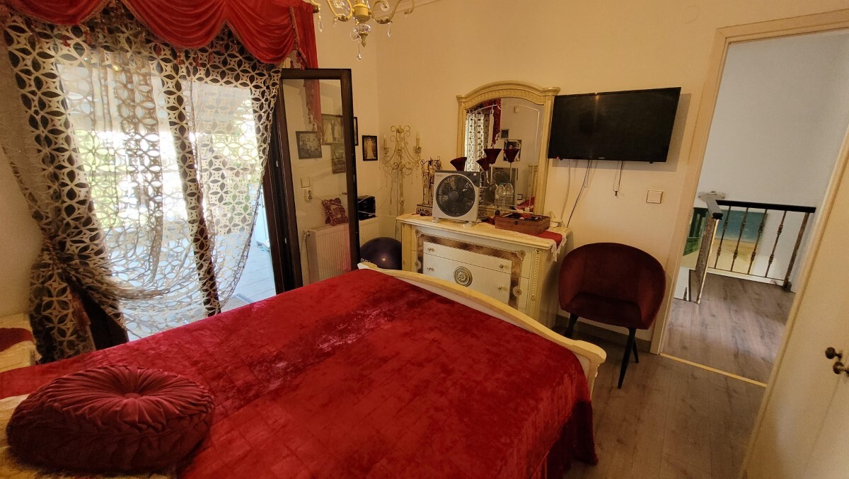 Продается 3-этажный коттедж площадью 180 кв.м в пригороде города Салоники. Цокольный этаж состоит из одной спальной комнаты, гостиной, одной душевой комнаты. Полу-первый этаж состоит из гостиной с кухней, одной столовой, одного санузла. Второй этаж состоит из 3 спальных комнат, одной душевой комнаты. У объекта есть солнечные батареи для нагрева воды, камин, кондиционер, тенты, зона барбекю, отопление. В здании расположен лифт. К недвижимости относится парковочное место, сад.