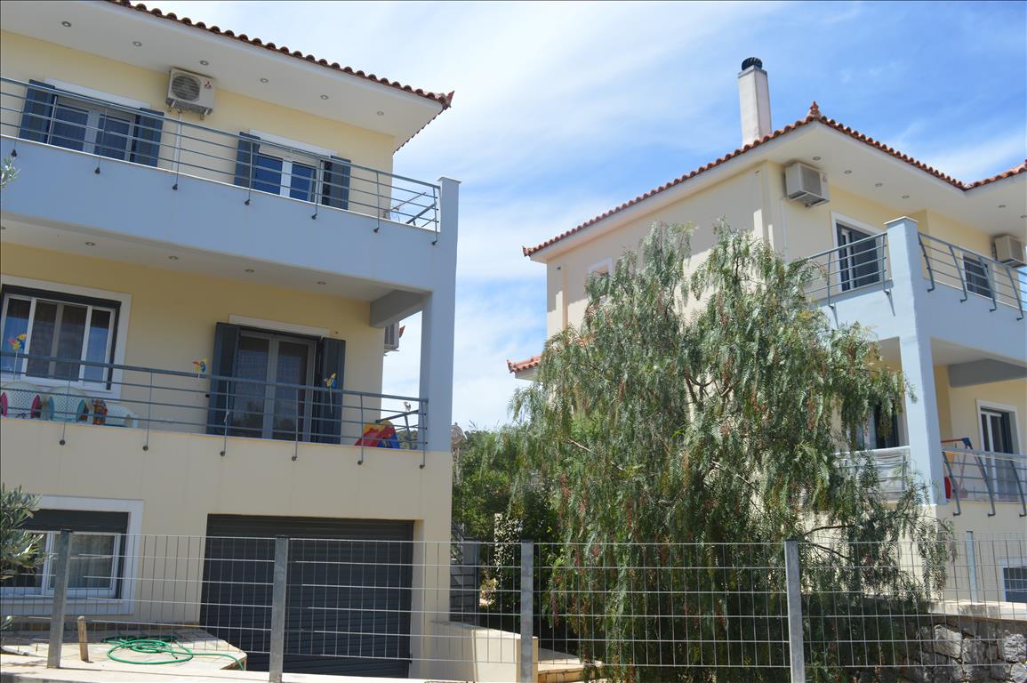 Продается таунхаус площадью 152 кв.м на Восточном Пелопоннесе. Таyнхаус расположен на 3 уровнях. Цокольный этаж состоит из 2 спальных комнат, одного санузла. Первый этаж состоит из гостиной с кухней, одного санузла. Второй этаж состоит из 2 спальных комнат, одной ванной комнаты. Из окон открывается великолепный вид на море, на горы, на город, на лес. У объекта есть солнечные батареи для нагрева воды, камин, кондиционер. Недвижимость продается с мебелью. К недвижимости относится парковочное место, сад, гараж.