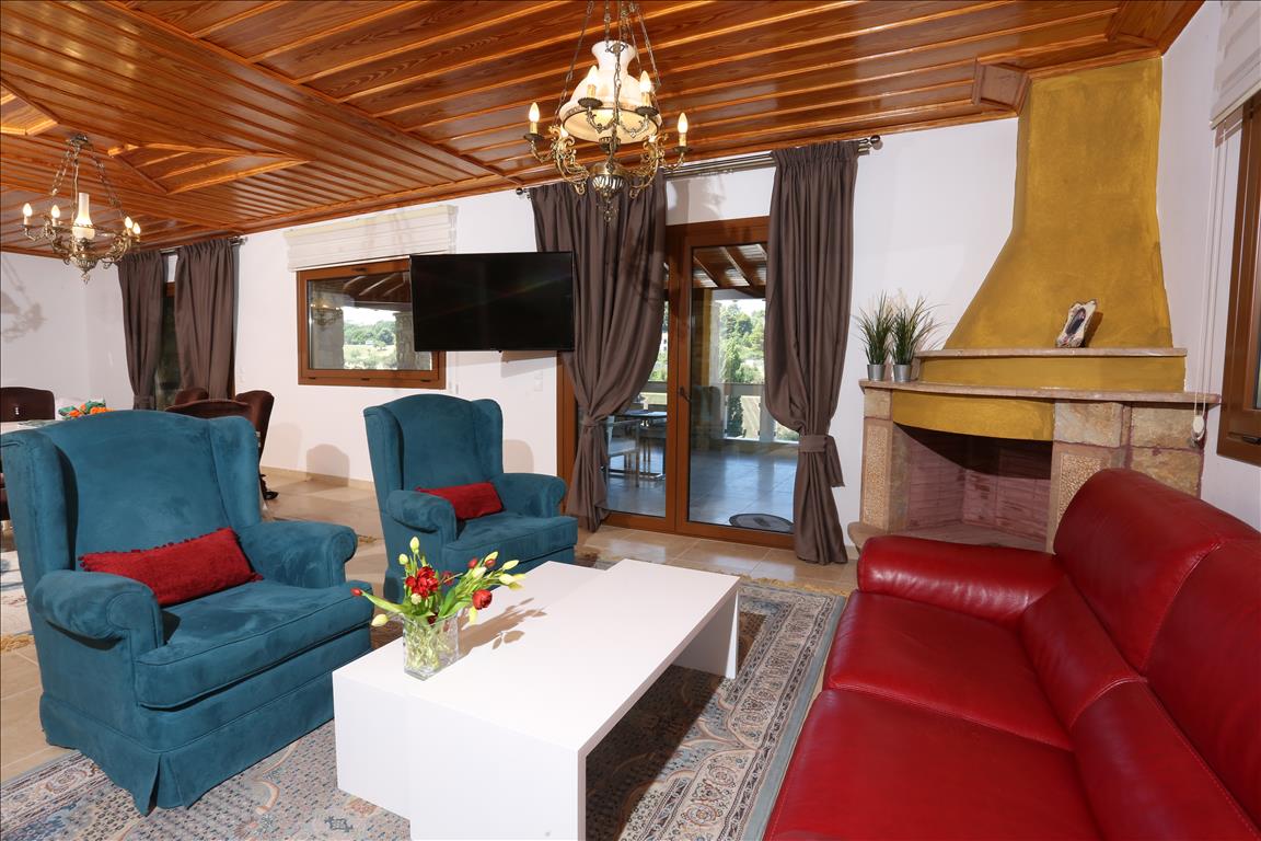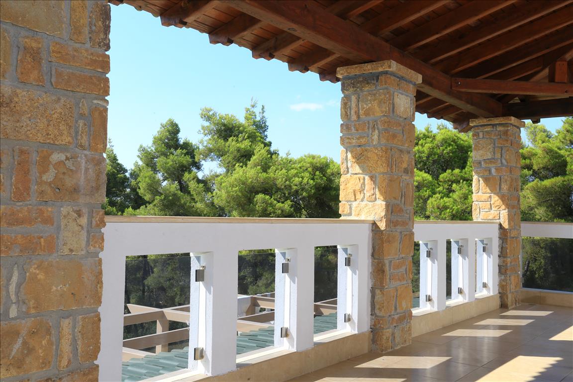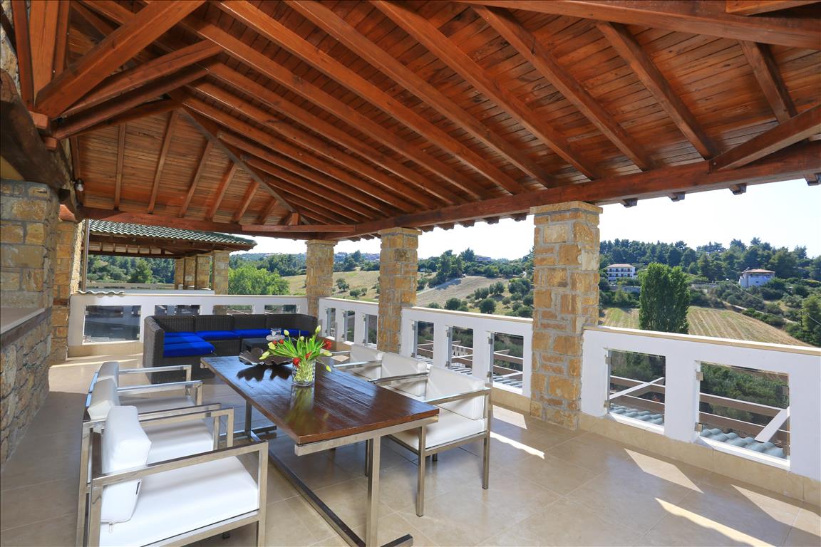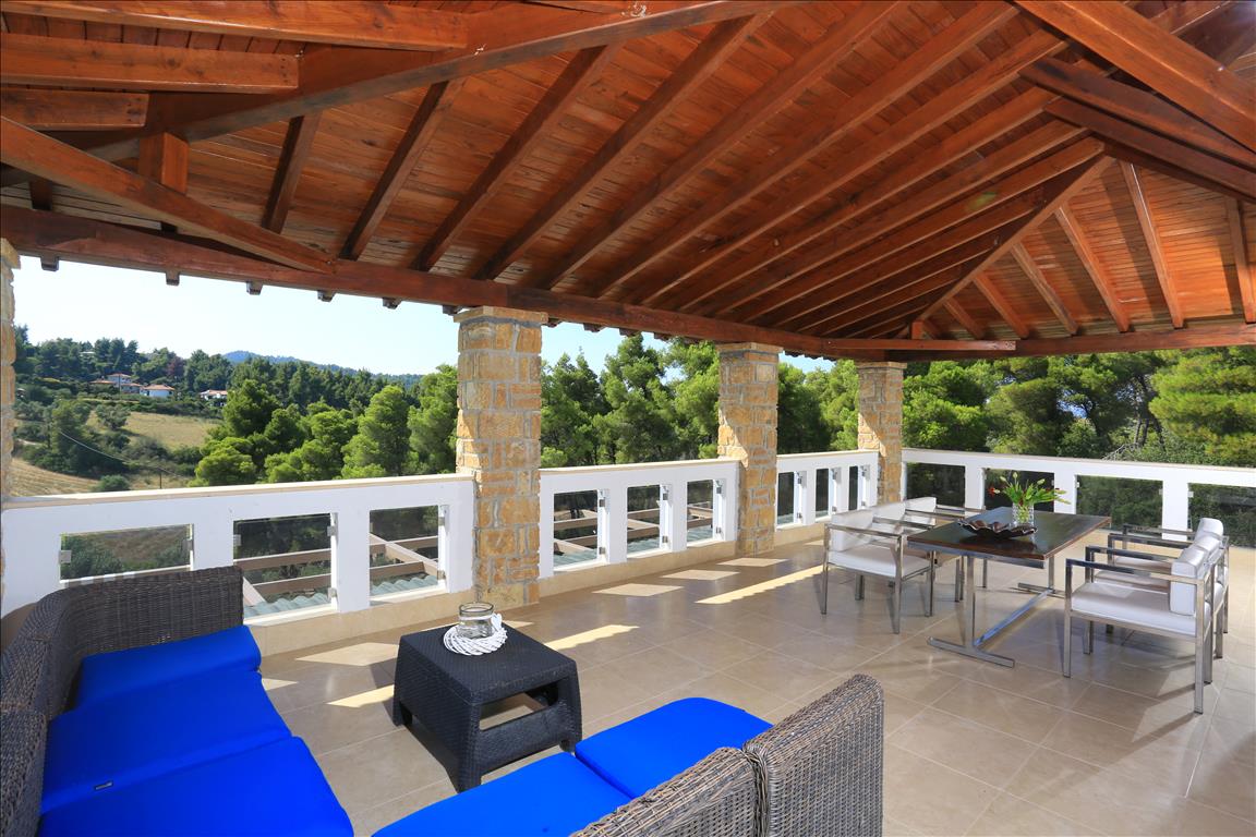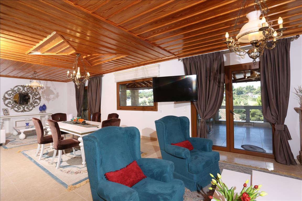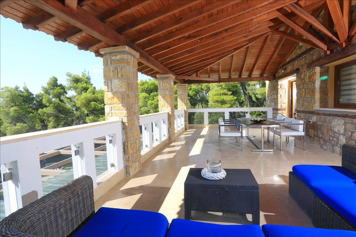 Продается вилла площадью 420 кв.м на полуострове Кассандра, региона Халкидики. Из окон открывается вид на горы, на город, на лес. У объекта есть солнечные батареи для нагрева воды, камин, кондиционер, тенты, зона барбекю, отопление. Недвижимость продается с мебелью. У объекта установлена сигнализация. К недвижимости относится парковочное место, сад. На территории расположен бассейн личного пользования.