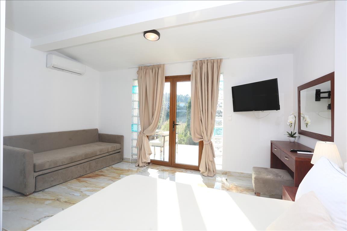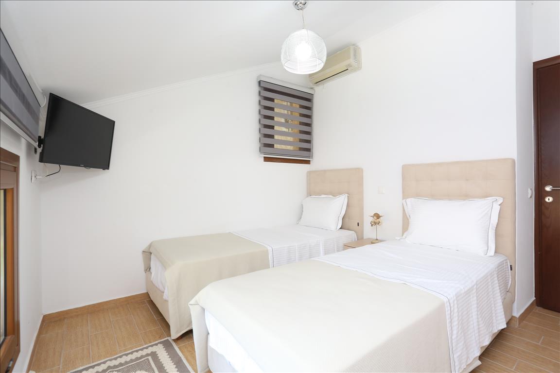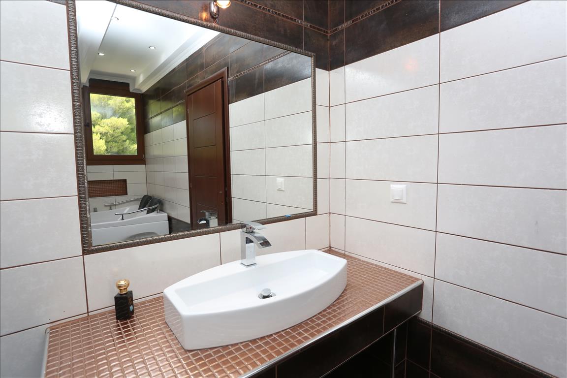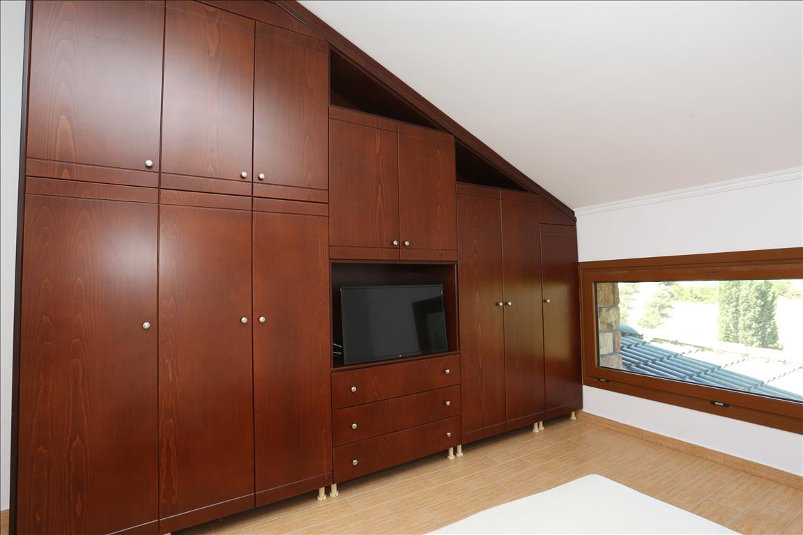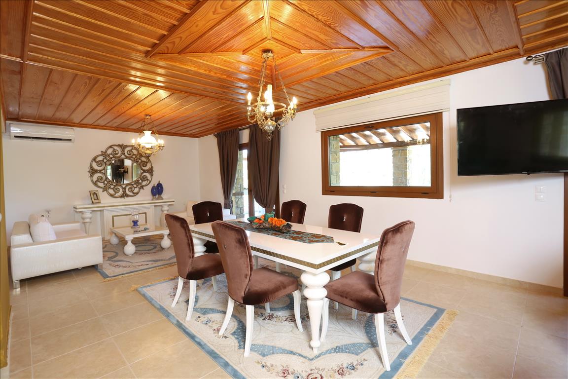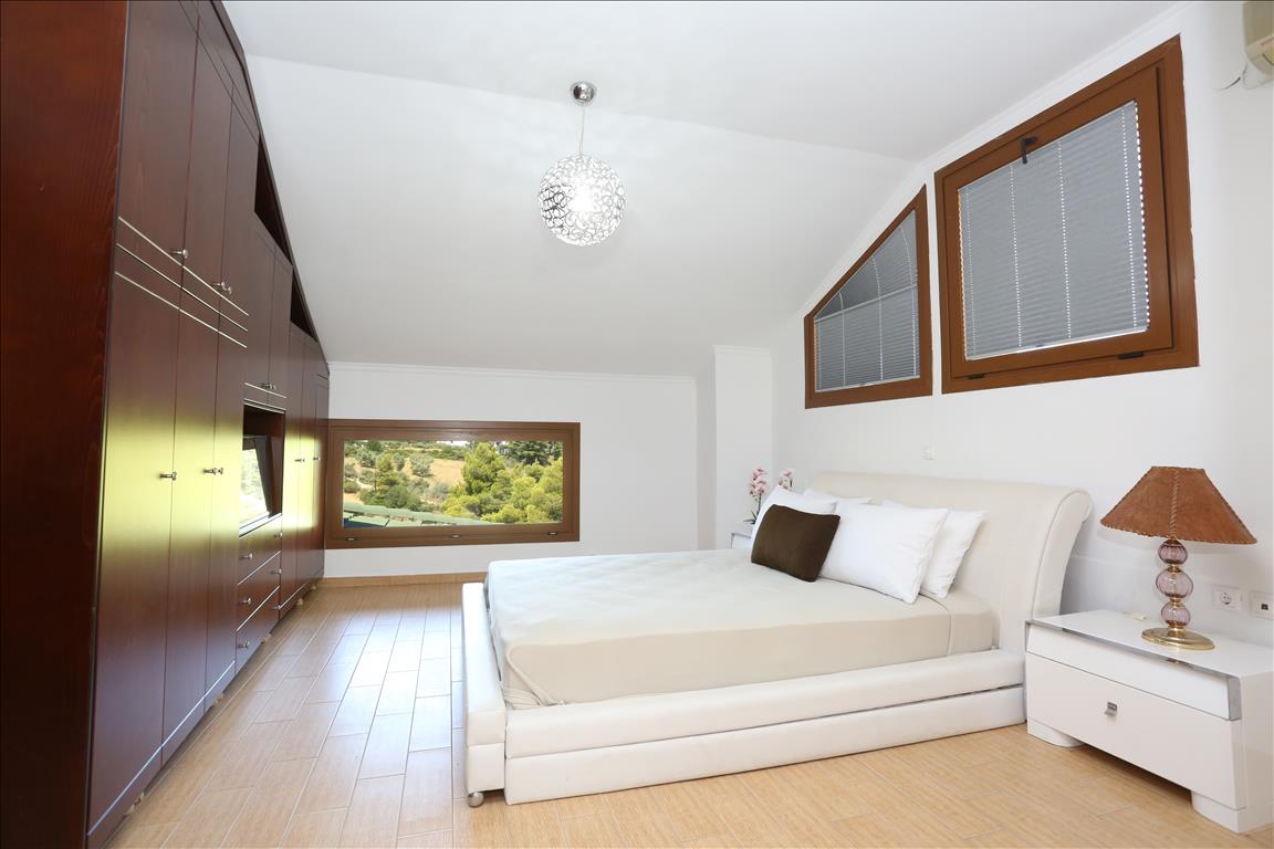 Продается вилла площадью 420 кв.м на полуострове Кассандра, региона Халкидики. Из окон открывается вид на горы, на город, на лес. У объекта есть солнечные батареи для нагрева воды, камин, кондиционер, тенты, зона барбекю, отопление. Недвижимость продается с мебелью. У объекта установлена сигнализация. К недвижимости относится парковочное место, сад. На территории расположен бассейн личного пользования.
