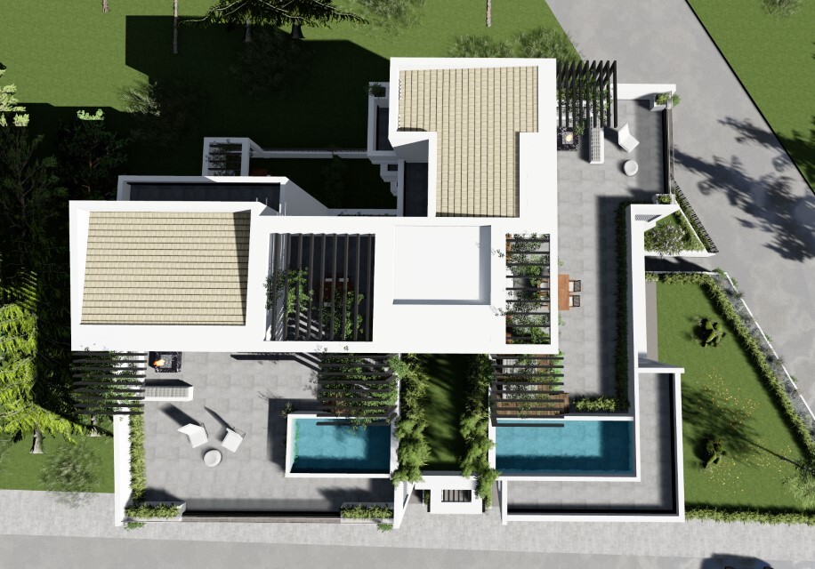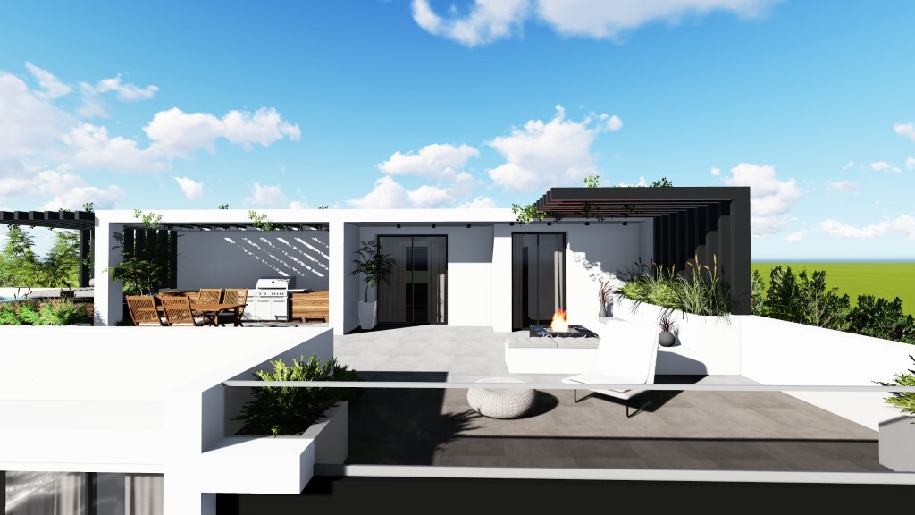 Продается таунхаус площадью 149 кв.м в пригороде города Салоники на стадии строительства. Таyнхаус расположен на 2 уровнях. Третий этаж состоит из одной спальной комнаты, гостиной с кухней, одной душевой комнаты, одного офиса. Четвертый этаж состоит из 2 спальных комнат, 2 душевых комнат. Таунхаус имеет угловое расположение. У объекта есть отопление. В здании расположен лифт. У объекта недвижимости есть сад на крыше. К недвижимости относится парковочное место, сад. На территории расположен бассейн личного пользования.