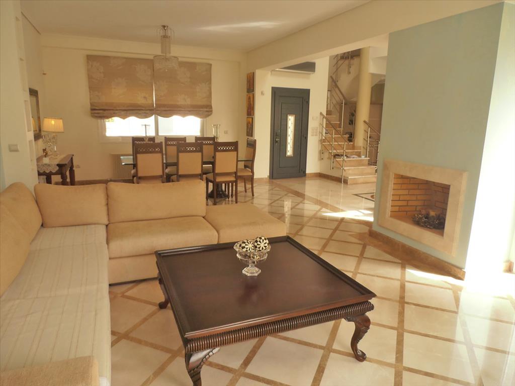 Продается 3-этажная вилла площадью 385 кв.м в Аттике. Цокольный этаж состоит из гостиной, одной кухни, одной душевой комнаты, одной кладовой. Первый этаж состоит из гостиной, одной кухни, одной душевой комнаты, одной кладовой. Второй этаж состоит из 4 спальных комнат, одной ванной комнаты, одной душевой комнаты. У объекта есть солнечные батареи для нагрева воды, камин, кондиционер, отопление. Недвижимость продается с мебелью. В здании расположен лифт. У объекта установлена сигнализация. К недвижимости относится парковочное место, сад, гараж.