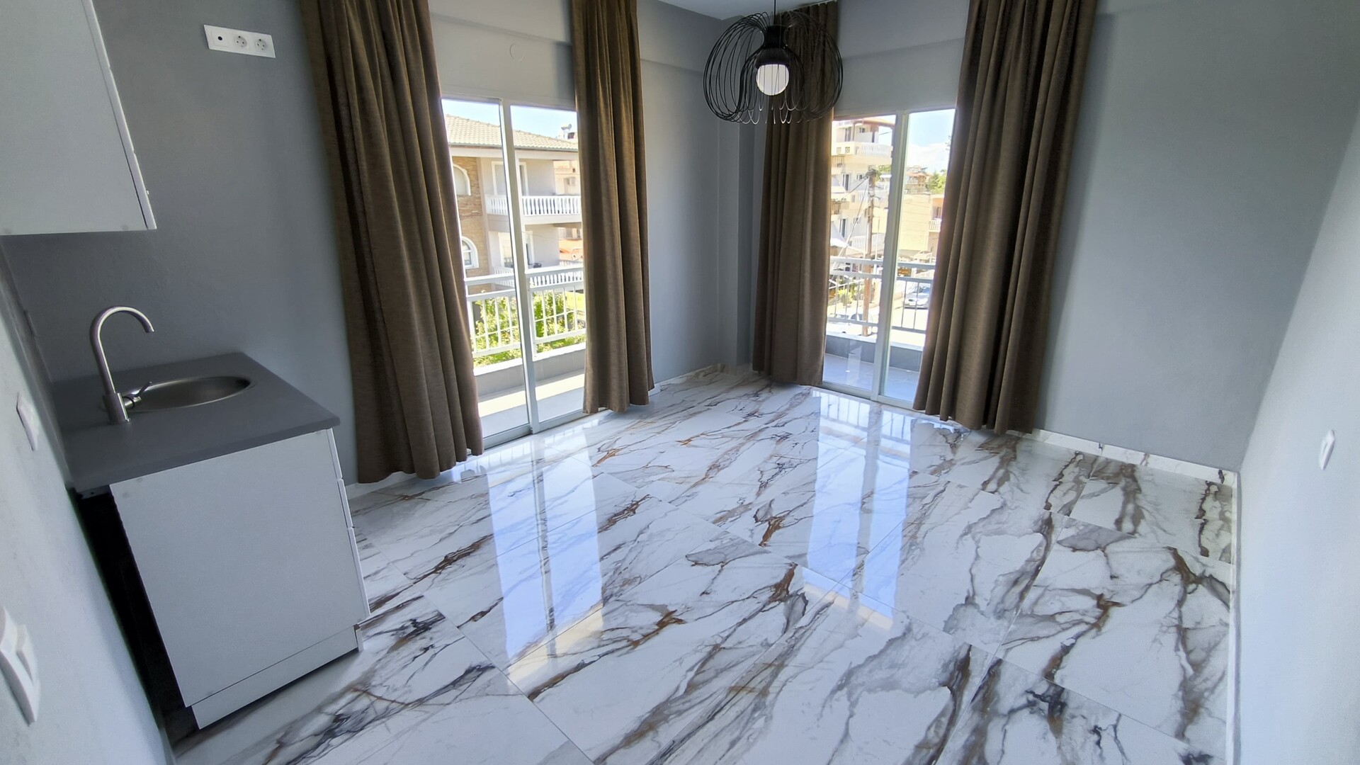 Последний этаж мебелирован. На остальных этажах имеется только встроенный кухонный гарнитур. Подано заявление на разделение счетчиков воды и электричества для каждой квартиры отдельно. Всего в 350 метрах от моря.