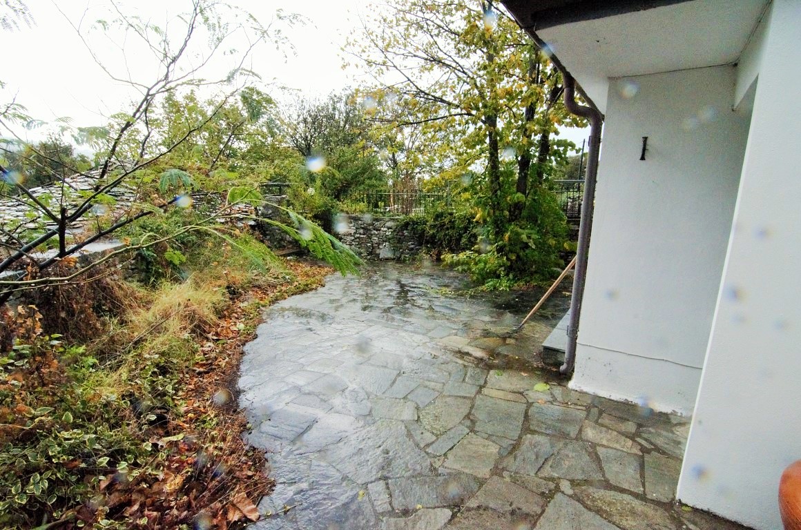 Коттедж имеет два двора на двух разных уровнях и парковку.