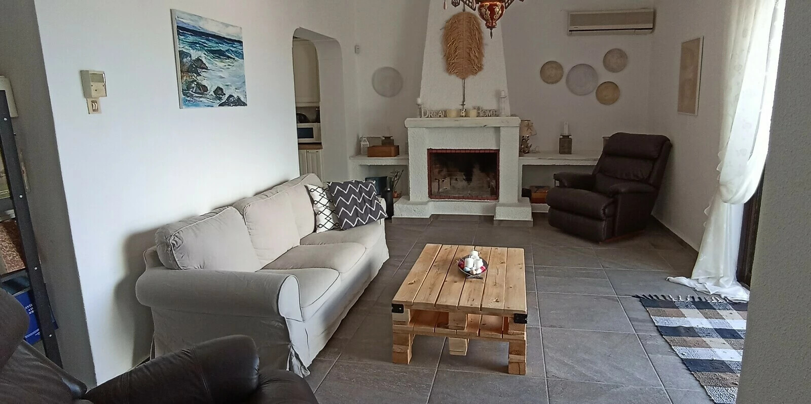 Продается 2-этажный коттедж площадью 200 кв.м на острове Эвия. Первый этаж состоит из 2 спальных комнат, гостиной, одной кухни, одной душевой комнаты. Второй этаж состоит из 2 спальных комнат, гостиной с кухней, одной кухни, одной душевой комнаты, одного санузла. Из окон открывается великолепный вид на море. У объекта есть солнечные батареи для нагрева воды, камин, кондиционер, зона барбекю, отопление. Недвижимость продается с мебелью. К недвижимости относится парковочное место, сад.