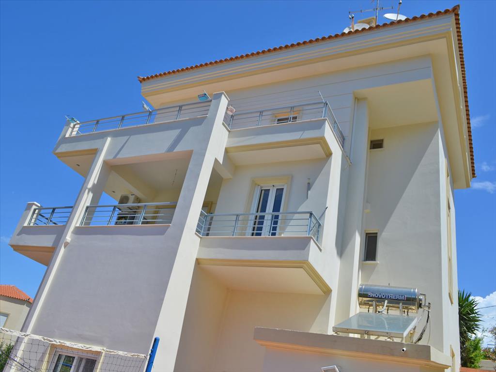 Продается 4-этажный коттедж площадью 330 кв.м в Аттике. Цокольный этаж состоит из 4 спальных комнат, гостиной, одной ванной комнаты. Первый этаж состоит из гостиной с кухней, одного санузла. Второй этаж состоит из одной спальной комнаты, одной ванной комнаты. Третий этаж состоит из 2 гостиных, одной душевой комнаты. Из окон открывается вид на море, на горы. У объекта есть солнечные батареи для нагрева воды, камин, кондиционер, отопление. Недвижимость продается с мебелью. В здании расположен лифт. У объекта установлена сигнализация. К недвижимости относится парковочное место, сад.