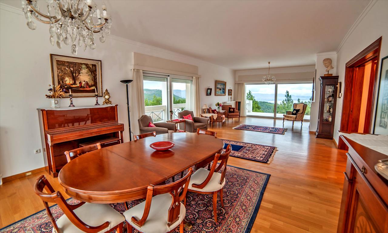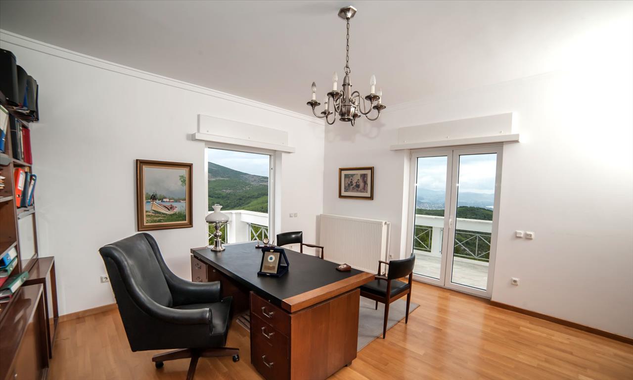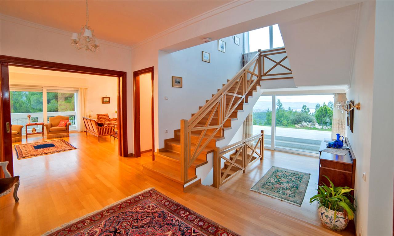 Продается 3-этажный коттедж площадью 480 кв.м в Аттике. Цокольный этаж состоит из 2 спальных комнат, гостиной, одной кухни, одной душевой комнаты, одной кладовой. Первый этаж состоит из 2 гостиных, одного санузла, одной кладовой. Второй этаж состоит из 5 спальных комнат, 3 ванных комнат. Из окон открывается великолепный вид на море, на горы. У объекта есть камин, кондиционер, отопление. Недвижимость продается с мебелью. В здании расположен лифт. У объекта установлена сигнализация. К недвижимости относится сад, гараж.