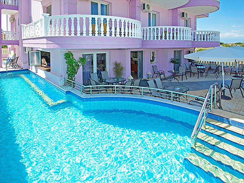 Продается гостиница площадью 580 кв.м. в регионе Олимпийской Ривьеры. Здание состоит из 3 этажей и вмещает 18 просторных оборудованных номеров. На первом этаже располагается ресепшн и кафе-бар. На участке площадью 400 кв.м. имеется бассеин. Гостиница была построена в 2010 году. Великолепный песчаный пляж расположен в 650 метрах, супермаркет в 200. Популярный курортный поселок славится своей набережной с многочисленными тавернами, кафе-барами и торговыми магазинами а также активной ночной жизнью.