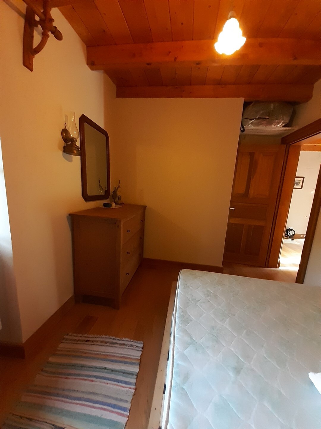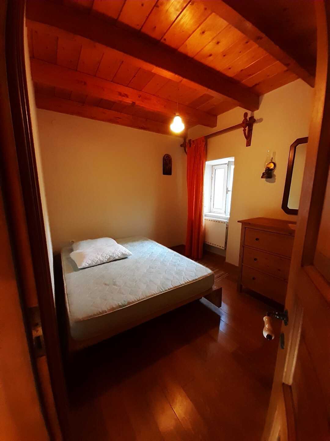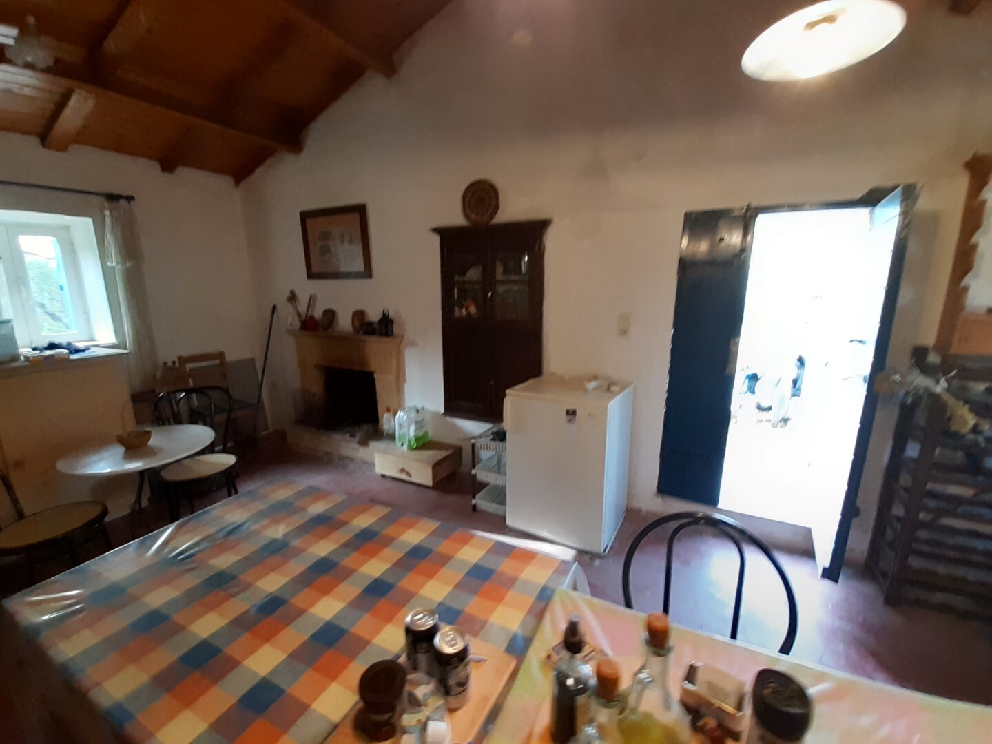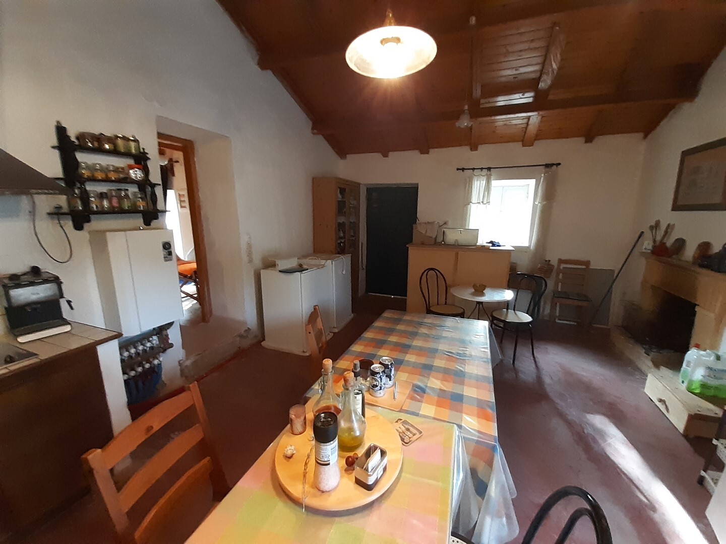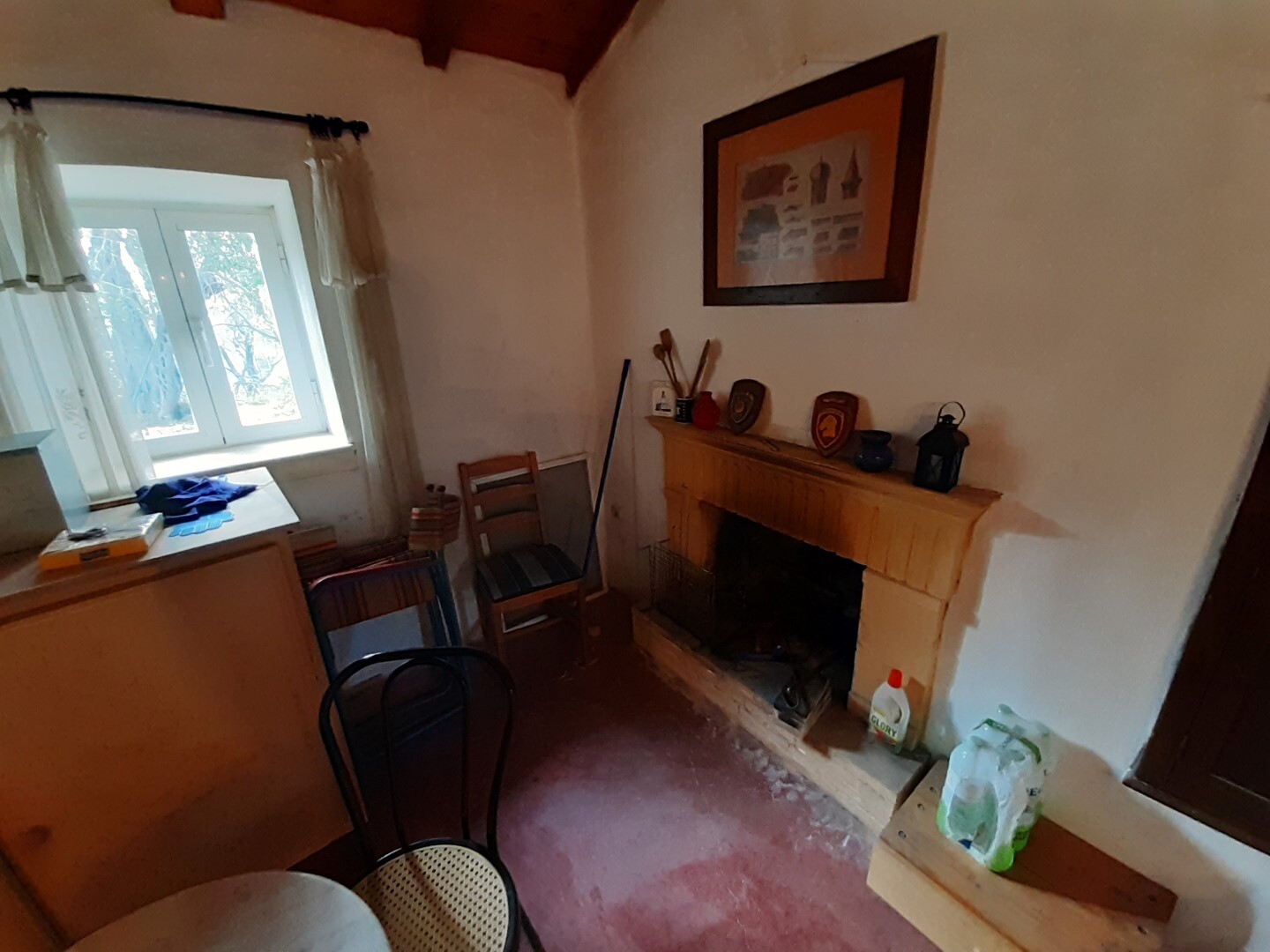 Дом в хорошем состоянии: 2 спальные комнаты, гостиная, кухня с камином, ванная комната, а также мансардный нежилой этаж.