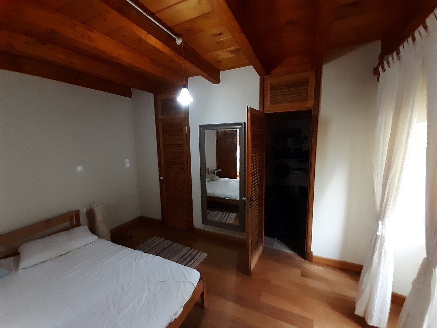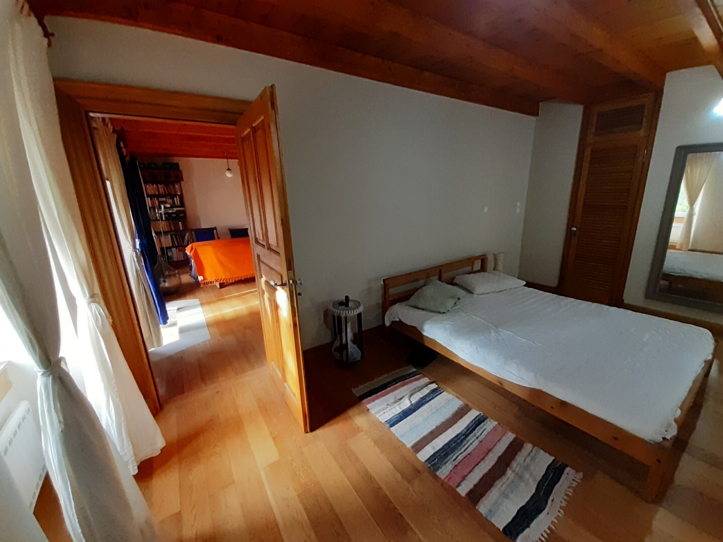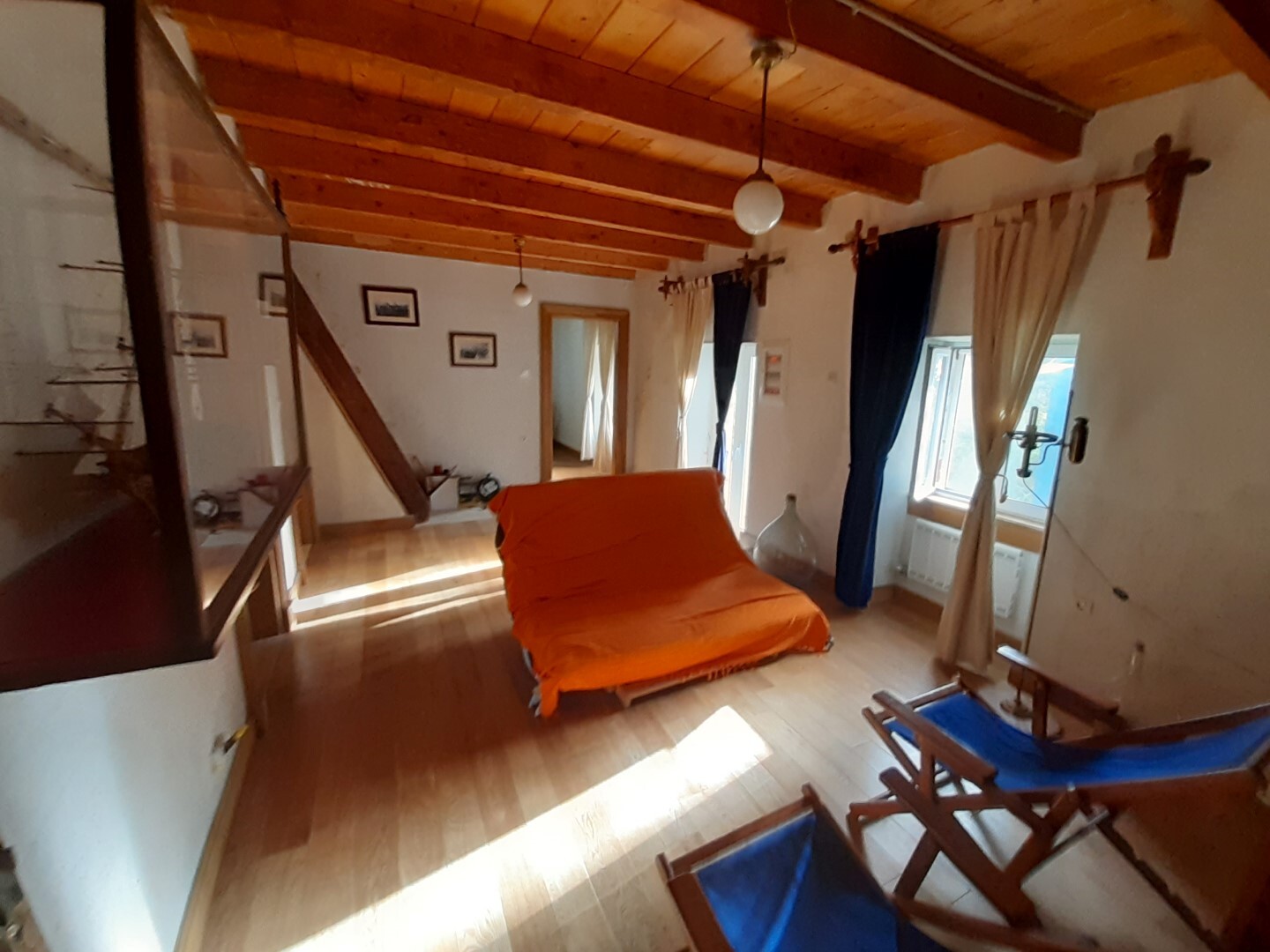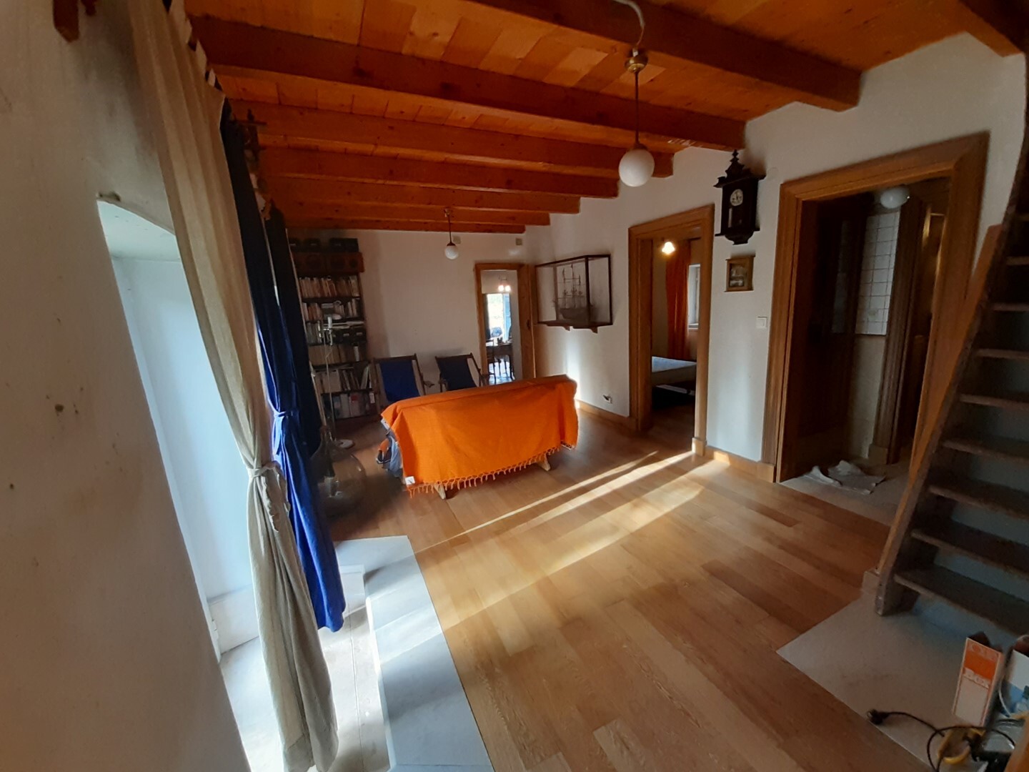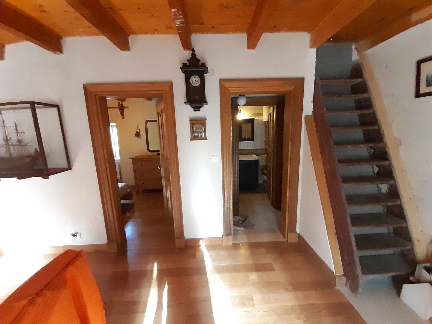 Дом в хорошем состоянии: 2 спальные комнаты, гостиная, кухня с камином, ванная комната, а также мансардный нежилой этаж.
