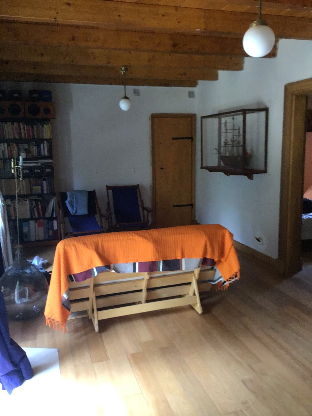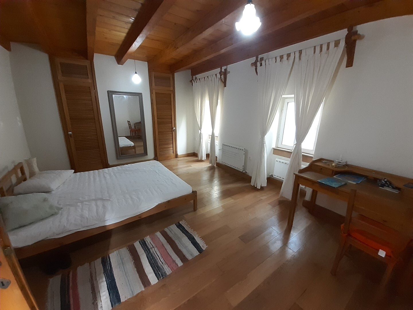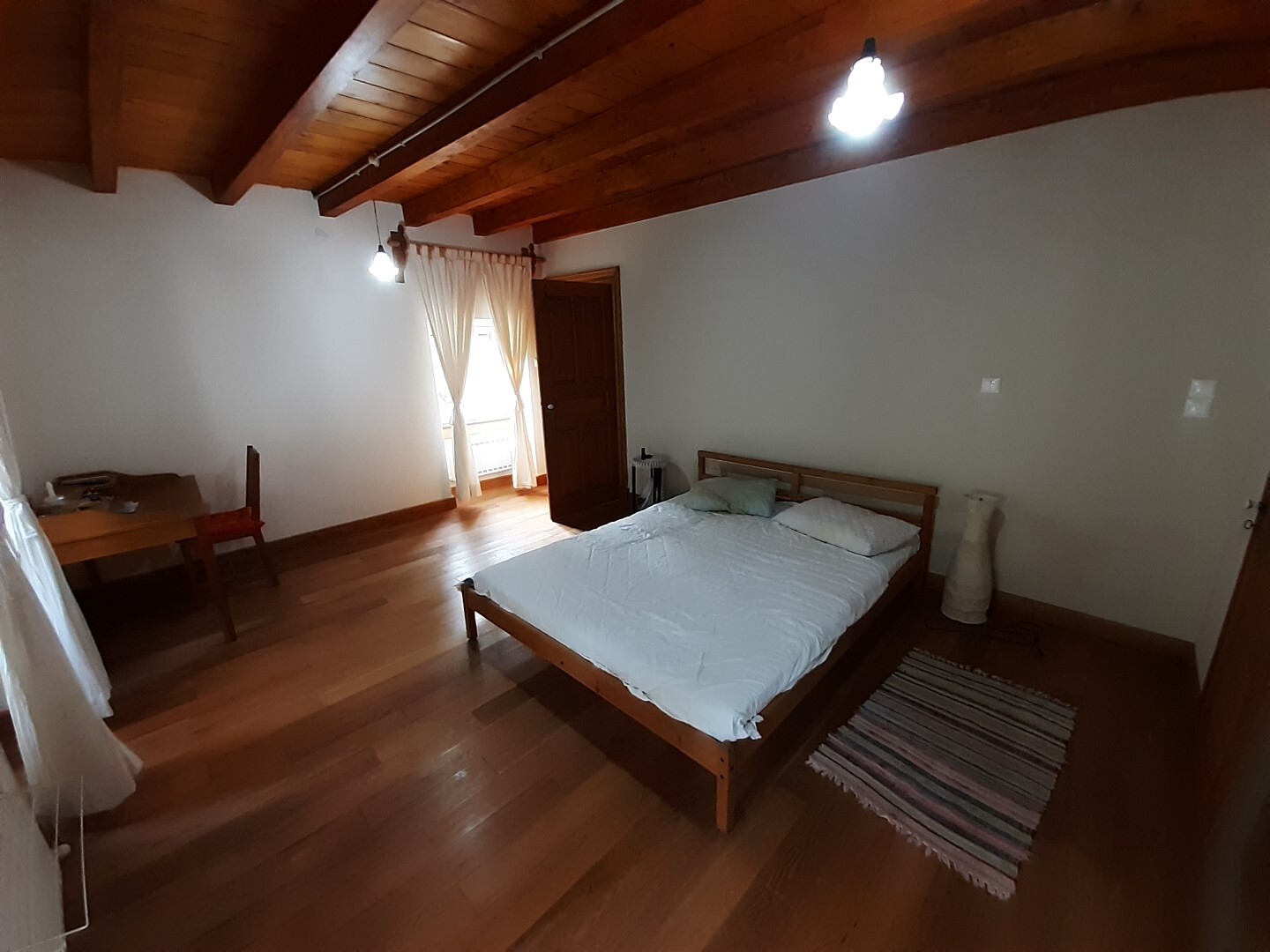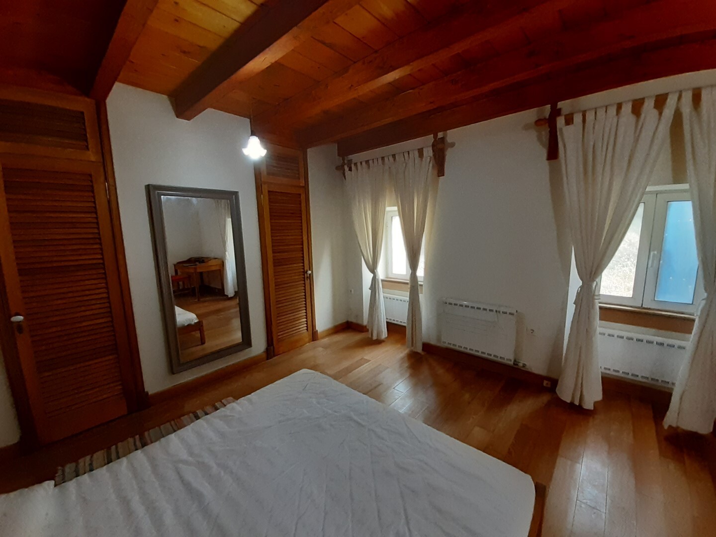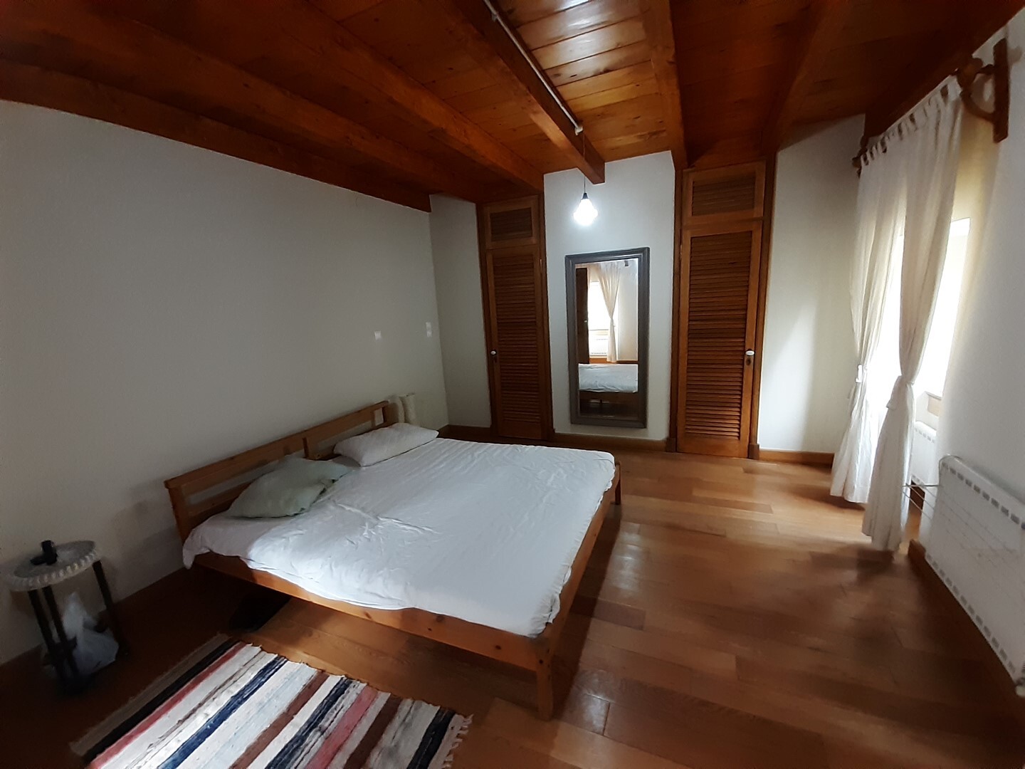Дом в хорошем состоянии: 2 спальные комнаты, гостиная, кухня с камином, ванная комната, а также мансардный нежилой этаж.