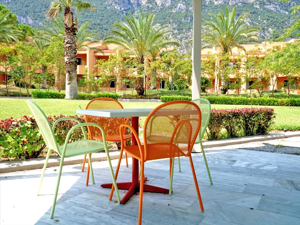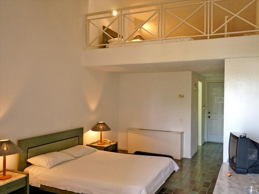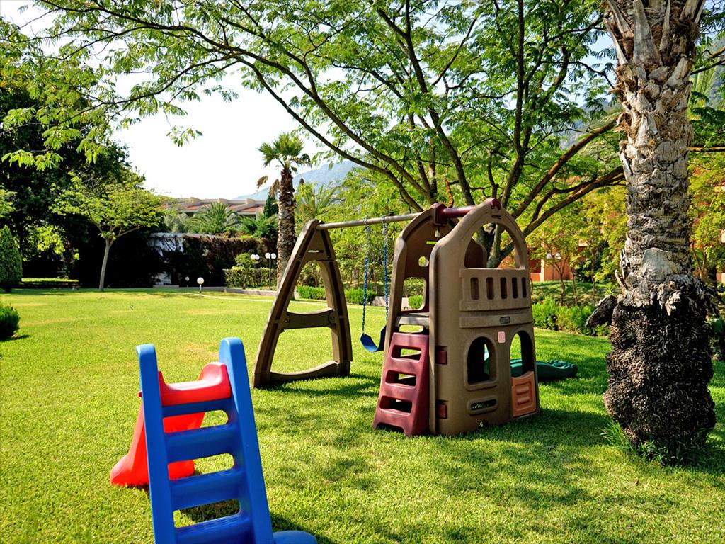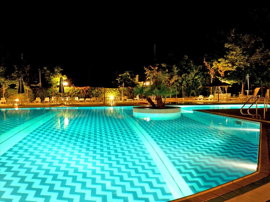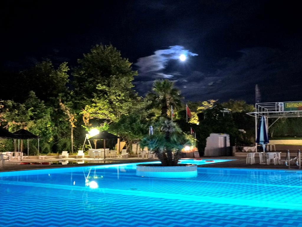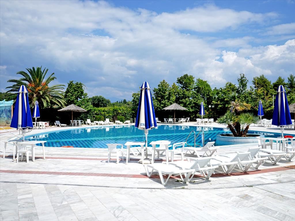 Имеется так же обустроенный пляж для частного пользования. Так же на территории отеля располагается большой бассейн, а так же небольшой детский бассейн (оба с пресной водой), таверна - вместительность 500 человек, 2 тенистых корта, стадион для игры в баскетбол, крытый паркинг на 80 машин и открытый на 180 машин, во всех комнатах есть климат контроль.