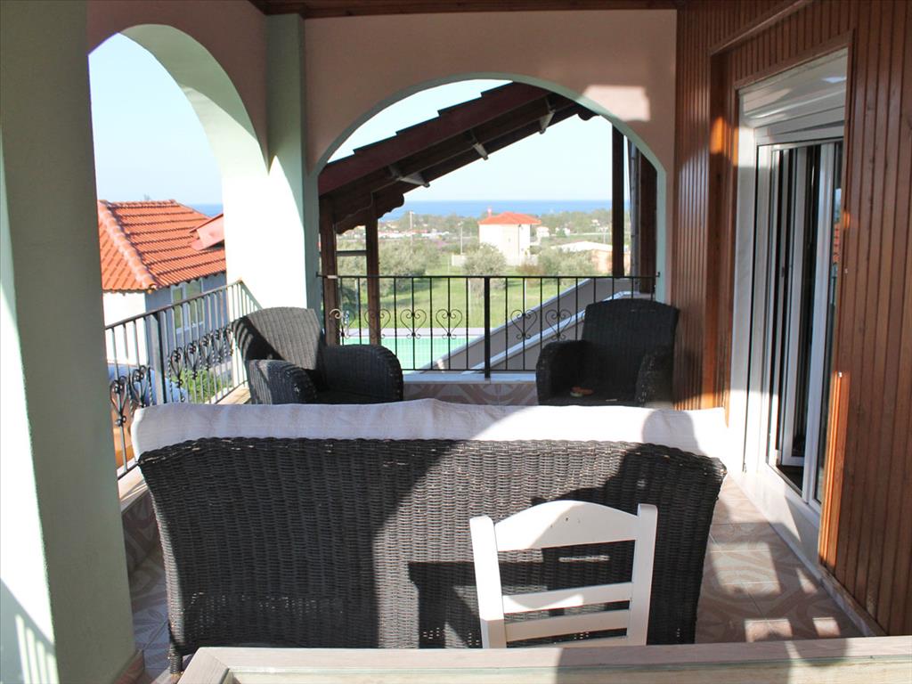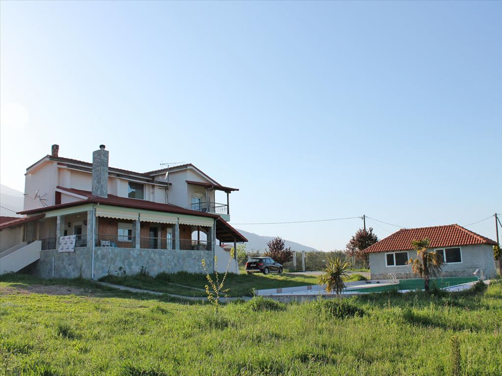 Вилла владеет большим земельным участком площадью 8600 кв.м. На территории расположен бассеин размером 5\12 кв.м., церквушка площадью 30 кв.м. а также сад с оливковыми и различными плодородными деревьями. Имеются складские помещения общей площадью 120 кв.м. Курортный поселок с высокоразвитой инфраструктурой находится на расстоянии 1.5 км.