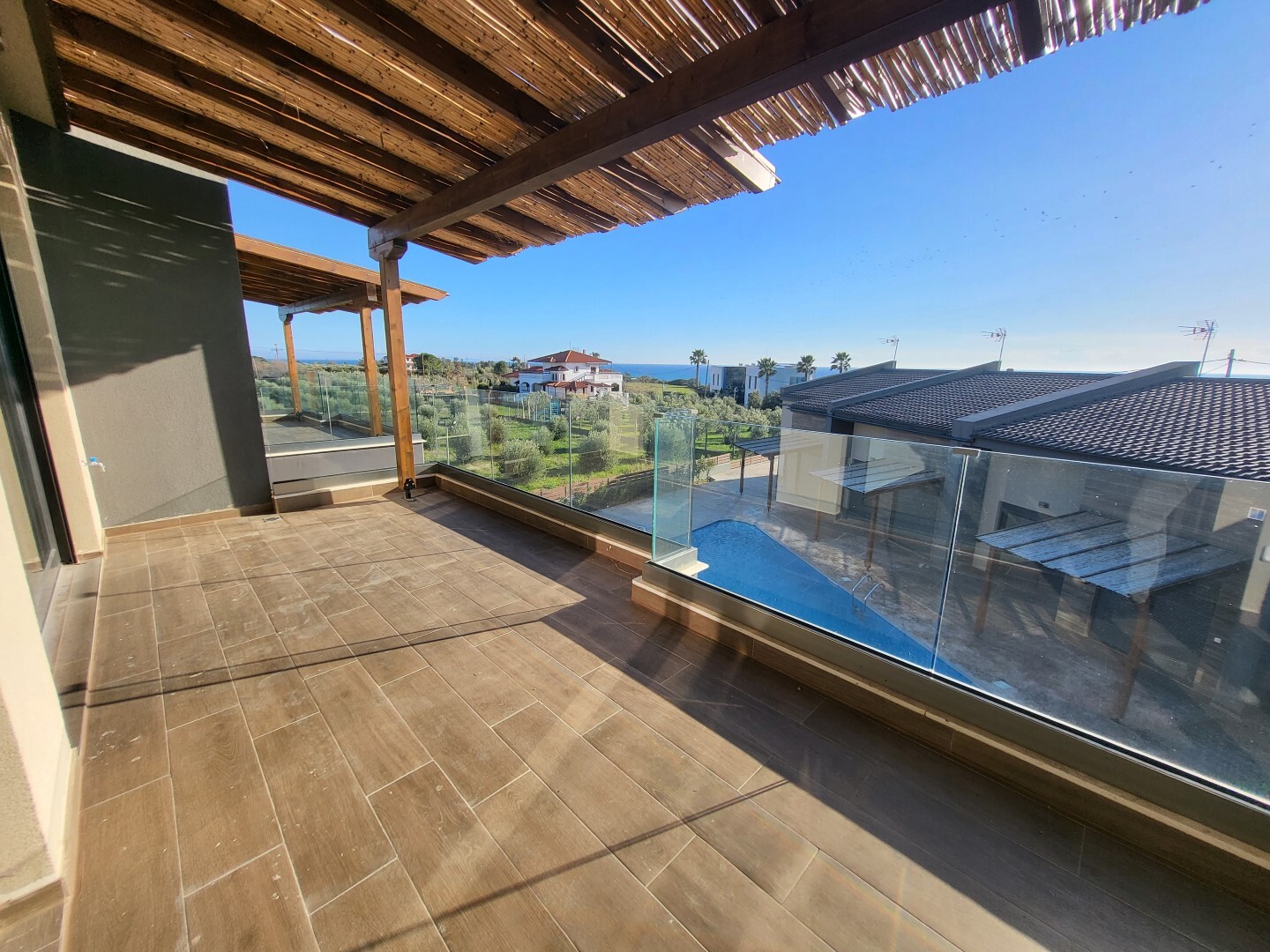 Продается квартира площадью 42 кв.м в Халкидиках. Квартира расположена на втором этаже и состоит из одной спальной комнаты, гостиной с кухней, одной душевой комнаты, джакузи. Из окон открывается вид на море. У объекта есть кондиционер. В здании нет лифта. К недвижимости относится парковочное место. В распоряжении владельцев общий бассейн на территории.