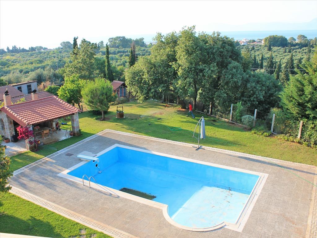 Продается 3-этажная вилла площадью 600 кв.м на Западном Пелопоннесе. Первый этаж состоит из гостиной, одной кухни, одной душевой комнаты, одной кладовой. Второй этаж состоит из одной спальной комнаты, одной кухни, одной ванной комнаты. Третий этаж состоит из 3 спальных комнат, 2 ванных комнат. Из окон открывается вид на море. У объекта есть солнечные батареи для нагрева воды, камин, зона барбекю, отопление. Недвижимость продается с мебелью. У объекта установлена сигнализация. К недвижимости относится парковочное место, сад. На территории расположен бассейн личного пользования.
