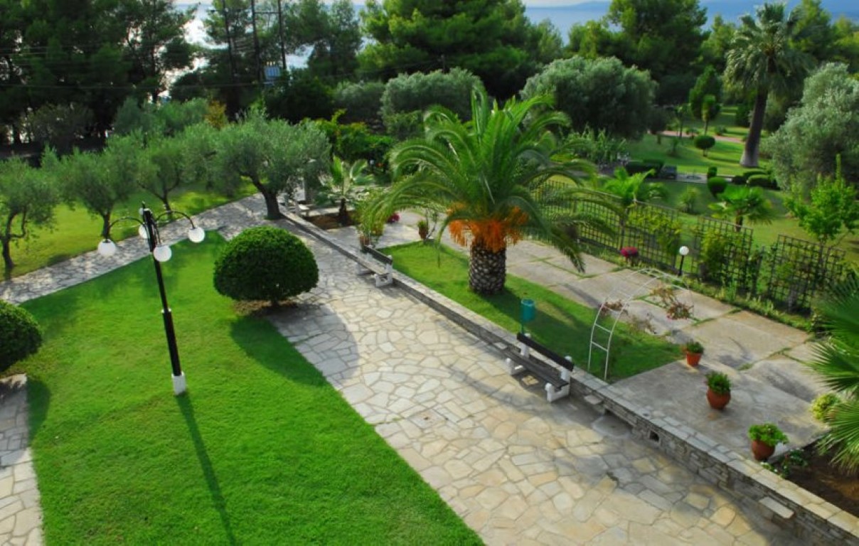 Продаётся гостиница площадью 700 кв.м. в одном из самых живописных мест полуострова Ситония. На первом этаже гостиницы расположены две квартиры площадью 48 и 60 кв.м. Второй этаж состоит из четырёх квартир площадью 50 кв.м. каждая. Мансардный этаж занимают две квартиры по 25 кв.м. каждая и кладовое помещение площадью 20 кв.м. Также, отдельно от главного здания, имеются еще две квартиры площадью 25 кв.м. каждая и кладовое помещение площадью 50 кв.м. С территории гостиныицы открывается красивый вид на море и лес. На прилегающем участке имеется ухоженный сад, барбекю, и место для стоянки автомобилей. Квартиры оснащены каминами и кондиционерами.