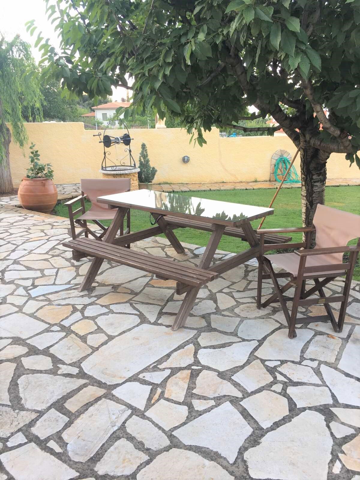 Продается 1-этажный коттедж площадью 98 кв.м на Восточном Пелопоннесе. Коттедж состоит из 3 спальных комнат, гостиной, одной кухни, одной ванной комнаты, одной душевой комнаты. Из окон открывается великолепный вид на море, на горы, на лес. У объекта есть солнечные батареи для нагрева воды, камин, кондиционер, тенты, зона барбекю, отопление. Недвижимость продается с мебелью. У объекта установлена сигнализация. К недвижимости относится парковочное место, сад.