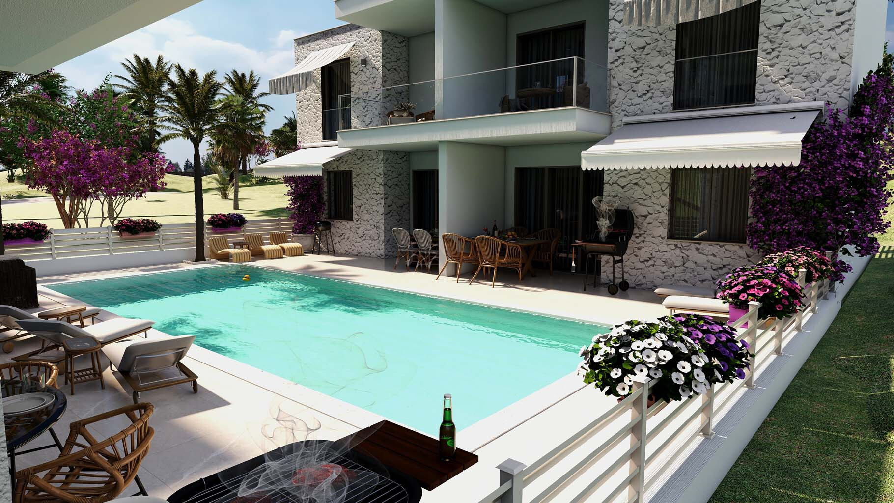 Продается таунхаус площадью 57 кв.м в пригороде Кавалы на стадии строительства. Таyнхаус расположен на 2 уровнях. Первый этаж состоит из гостиной с кухней, одной душевой комнаты. Второй этаж состоит из 2 спальных комнат, одной душевой комнаты. У объекта есть солнечные батареи для нагрева воды. К недвижимости относится сад. В распоряжении владельцев общий бассейн на территории.