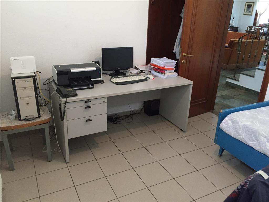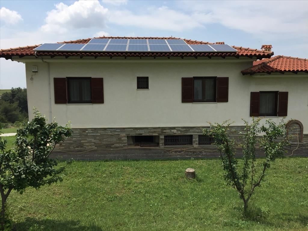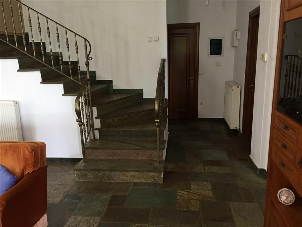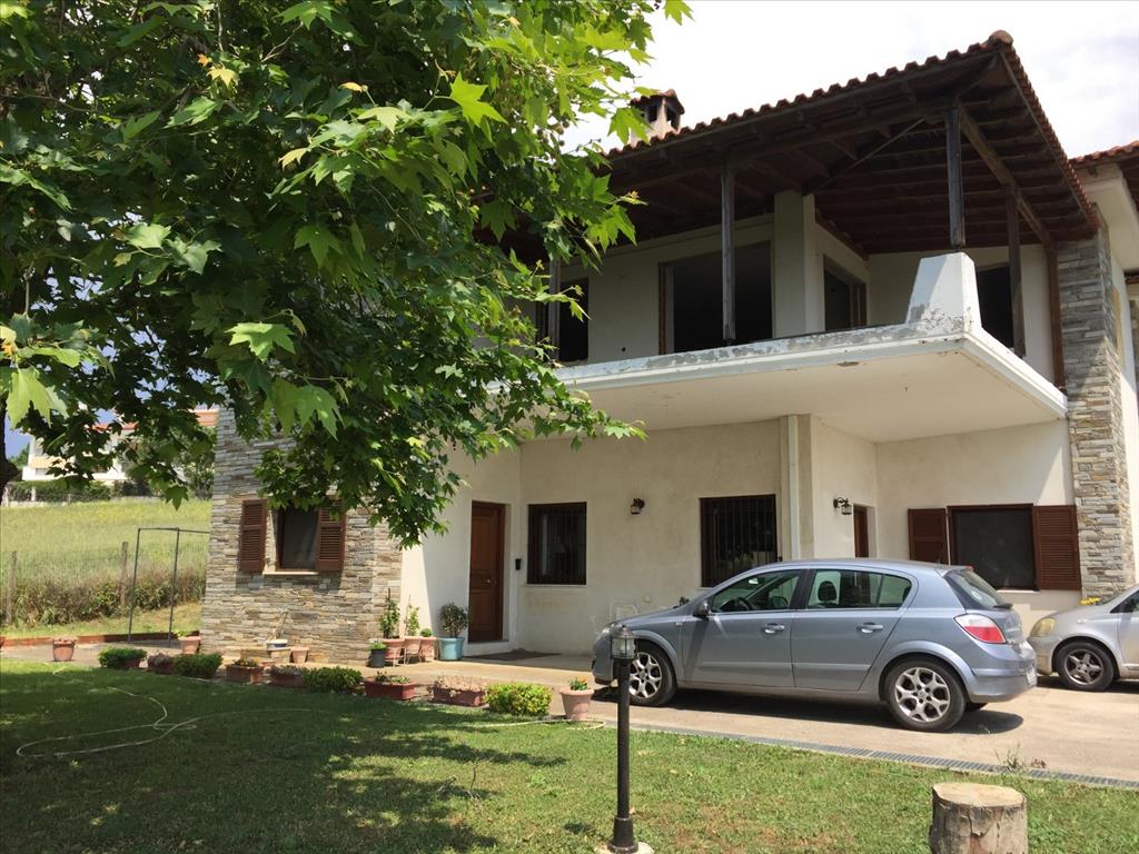 Продается 2-этажный коттедж площадью 369 кв.м в пригороде города Салоники. Цокольный этаж состоит из 2 спальных комнат, гостиной с кухней, одной кухни, одной ванной комнаты, 2 кладовых. Первый этаж состоит из 3 спальных комнат, 2 душевых комнат. У объекта есть солнечные батареи для нагрева воды, камин, отопление. Недвижимость продается с мебелью. У объекта установлена сигнализация. К недвижимости относится парковочное место, сад.