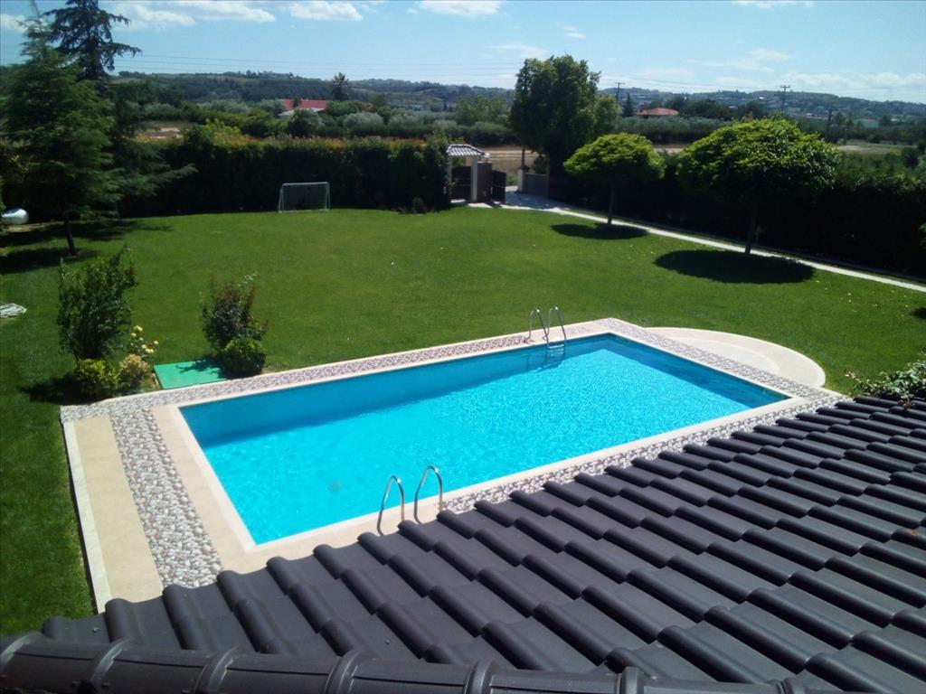 Продается 2-этажная вилла площадью 240 кв.м в пригороде города Салоники. Первый этаж состоит из одной спальной комнаты, гостиной с кухней, одной кухни, одной душевой комнаты, одной кладовой. Второй этаж состоит из 3 спальных комнат, 2 ванных комнат. Из окон открывается вид на горы, на лес. У объекта есть солнечные батареи для нагрева воды, камин, кондиционер, отопление. Недвижимость продается с мебелью. У объекта установлена сигнализация. К недвижимости относится парковочное место, сад. На территории расположен бассейн личного пользования.