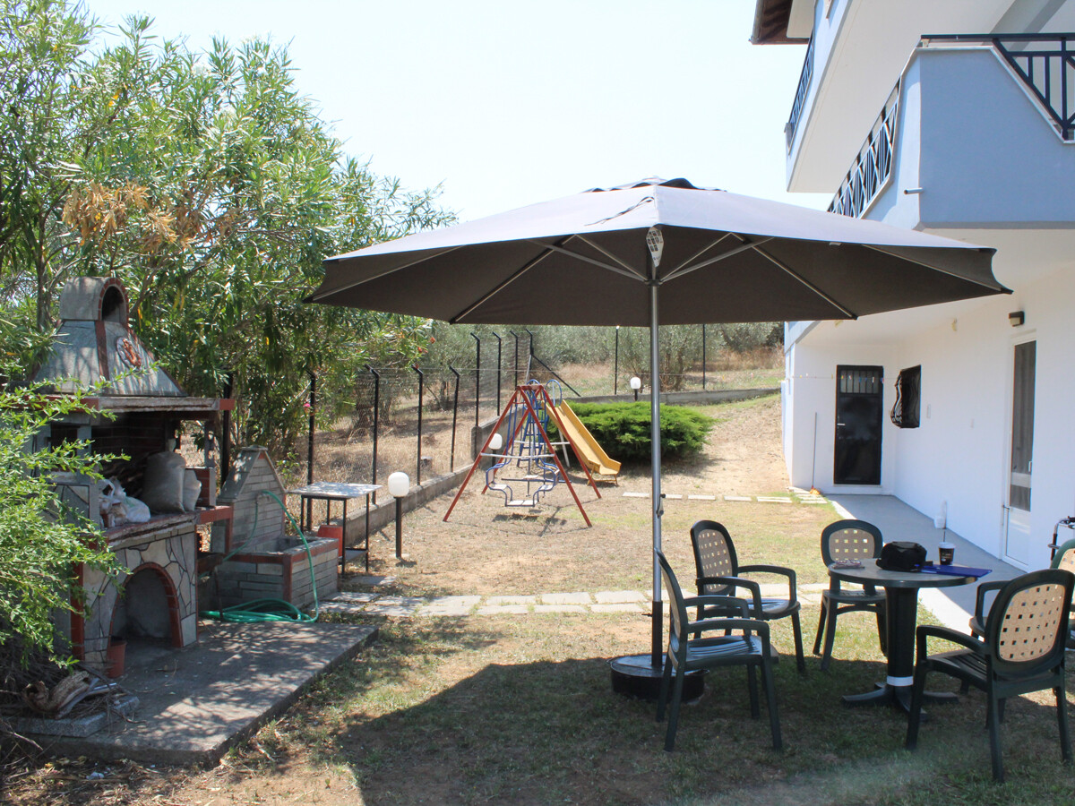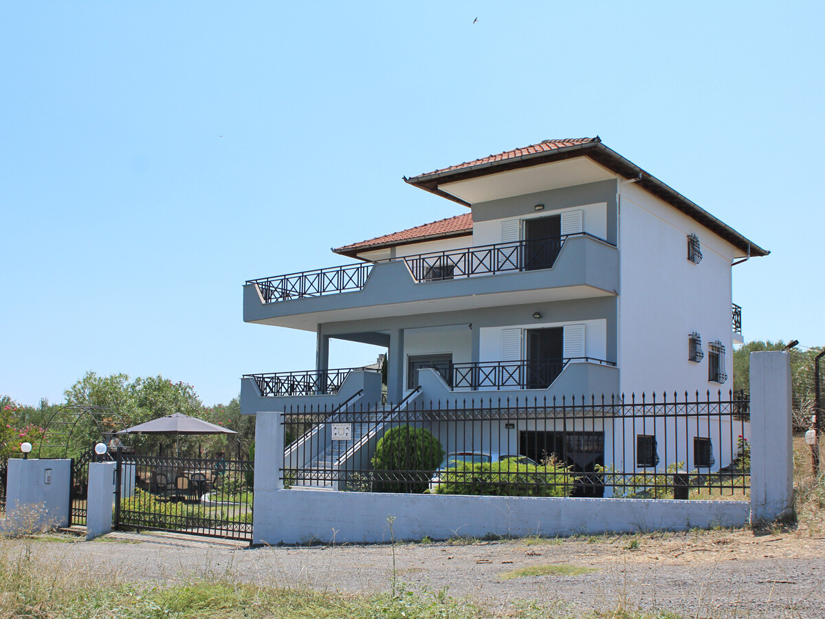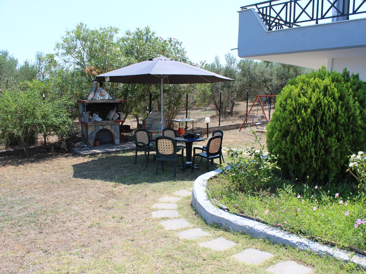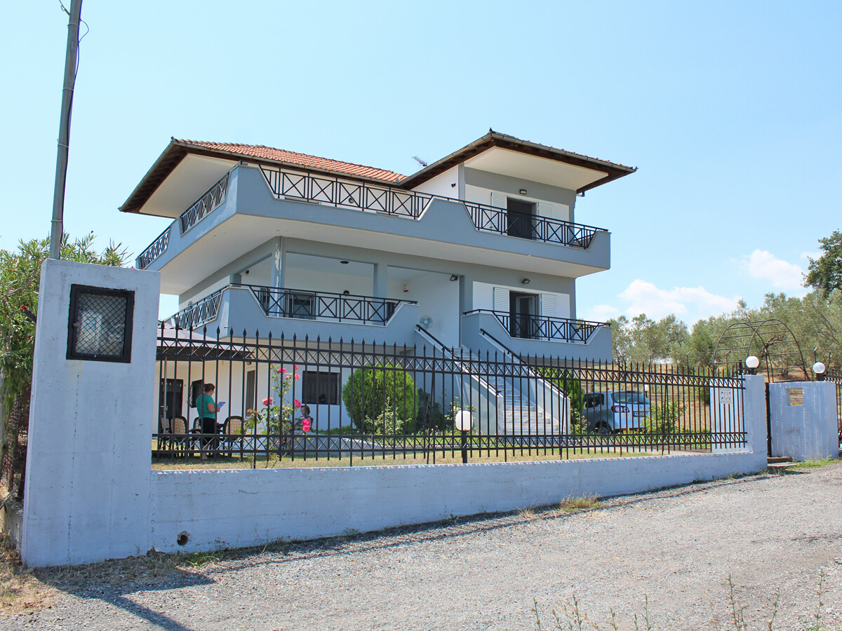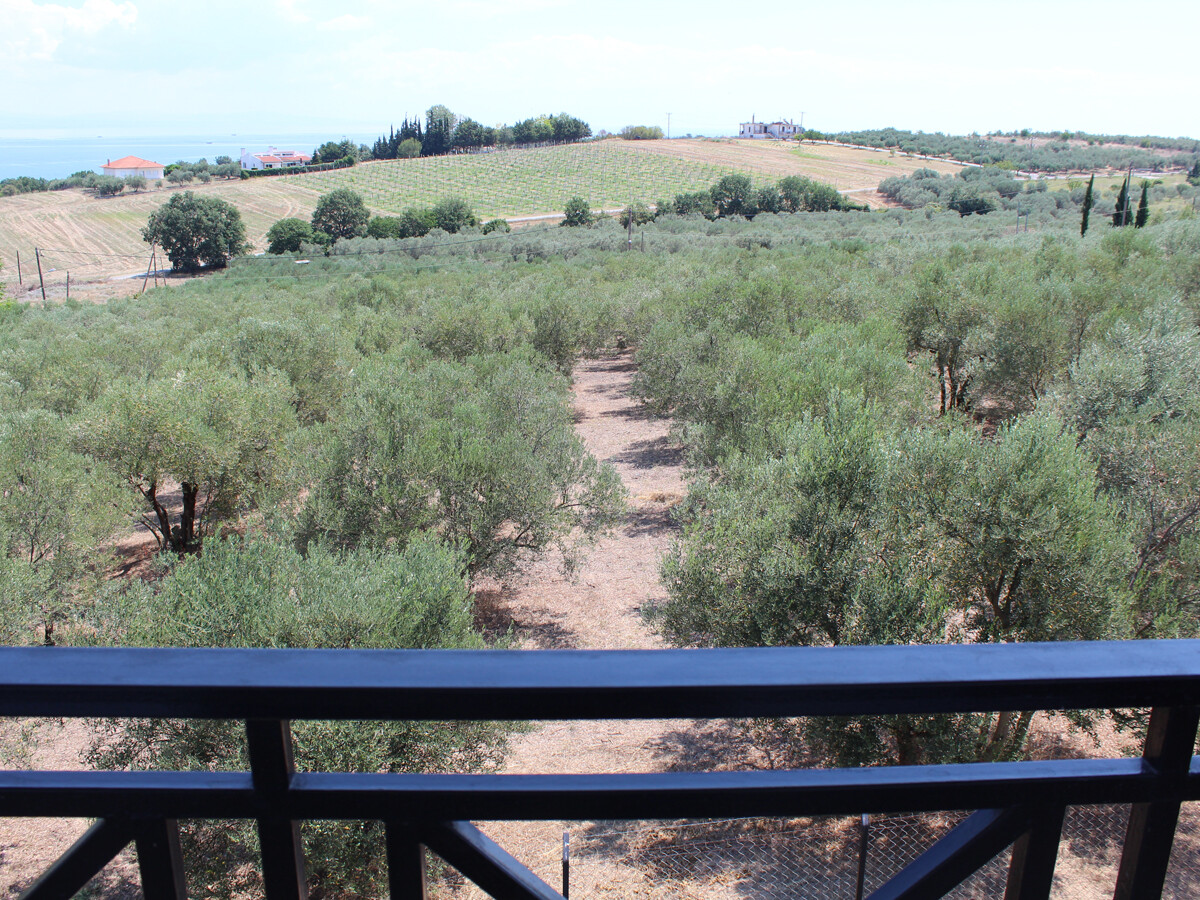 На участке площадью 8 000 кв. м растут оливковые деревья, есть открытая парковка, сад и зона барбекю.