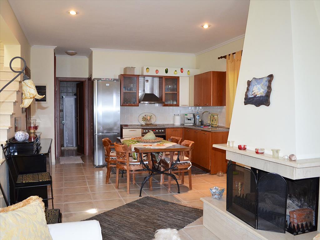 Продается таунхаус площадью 100 кв.м на полуострове Кассандра, региона Халкидики. Таyнхаус расположен на 2 уровнях. Первый этаж состоит из гостиной, одной кухни, одной ванной комнаты. Второй этаж состоит из 2 спальных комнат, одной ванной комнаты. Из окон открывается вид на море. У объекта есть камин, кондиционер, отопление. Недвижимость продается с мебелью. К недвижимости относится парковочное место. На территории расположен бассейн личного пользования.