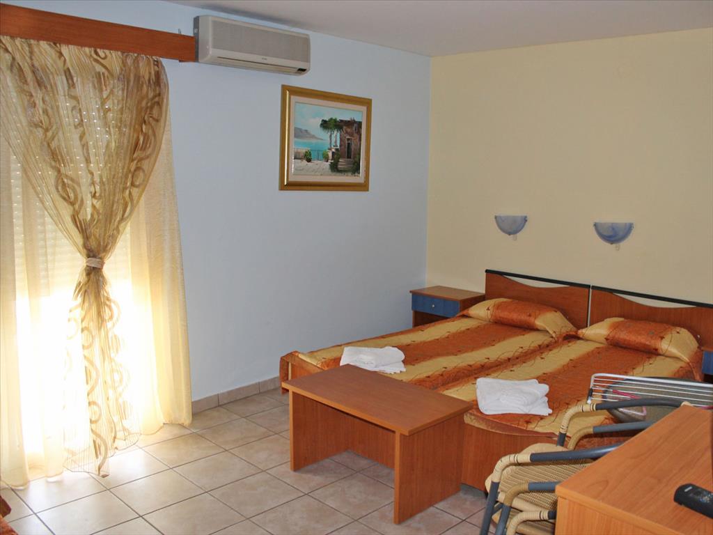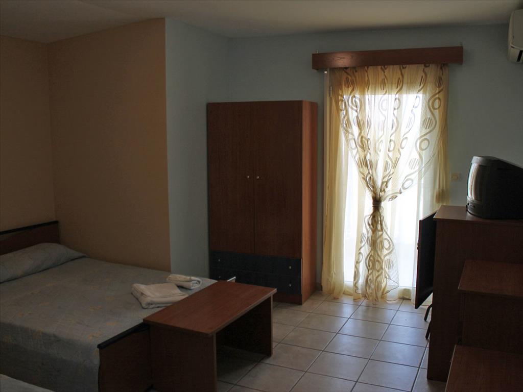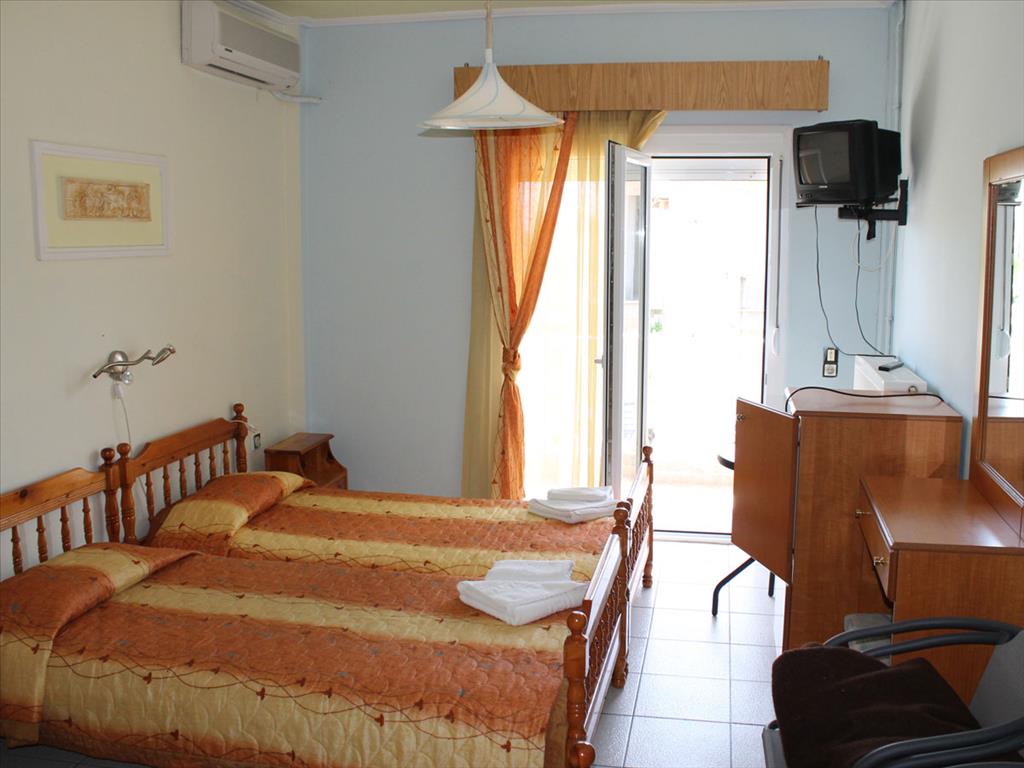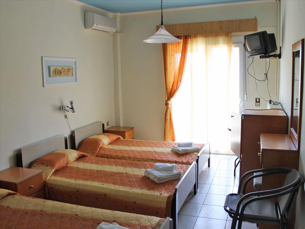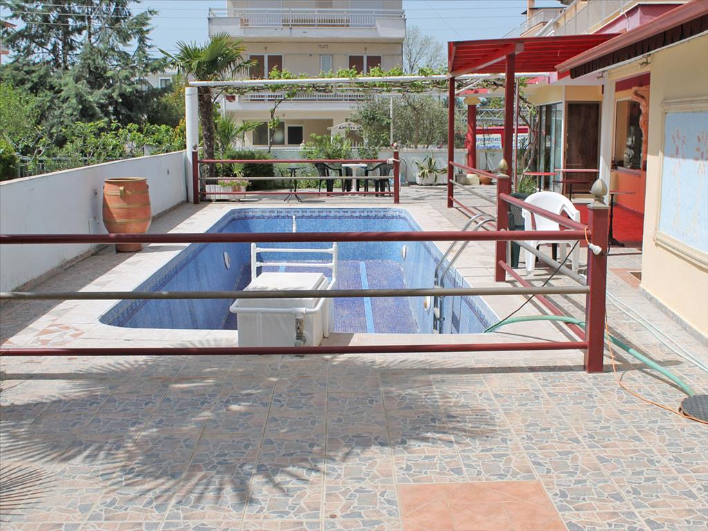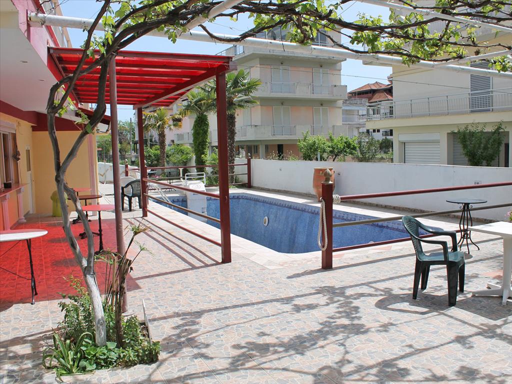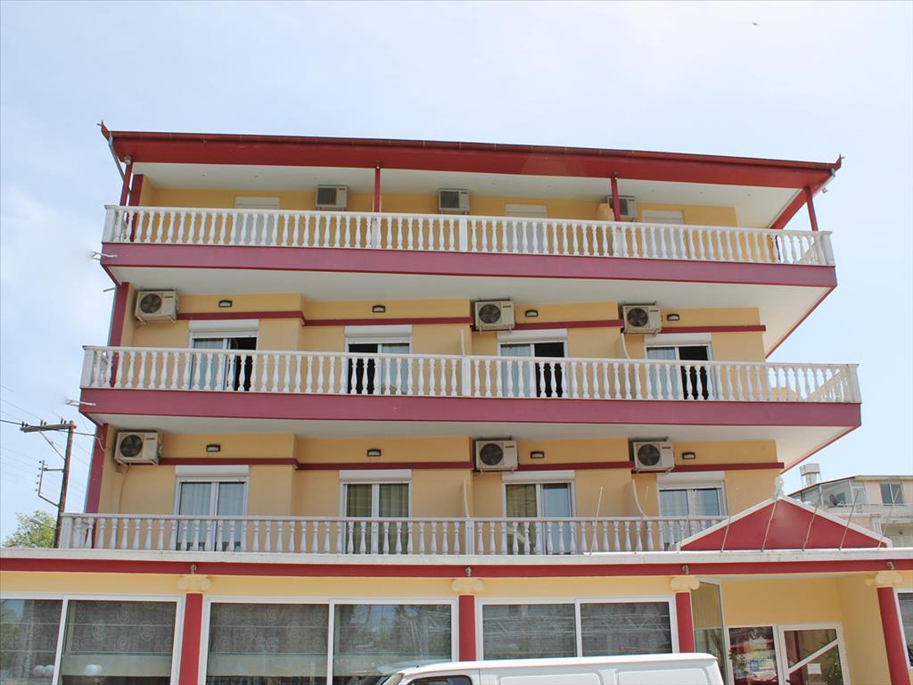 Продается гостиница в популярном курортном поселке Олимпийской Ривьеры. Площадь гостиницы составляет 800 кв.м. Первый этаж занимает ресепшн, ресторан, кухня, мини - бар, складские помещения а также трехкомнатная квартира площадью 70 кв.м. Три верхних этажа вмещают 23 двухместных номера. Номера полностью оборудованны и мебелированны. С лицевой стороны номера имеют великолепный вид на вершины Олимпа, с противоположной частичный на море. Площадь участка пренадлежащего гостинице составляет 787 кв.м. на котором имеется бассейн 3 на 10 метров, и территория под паркинг.