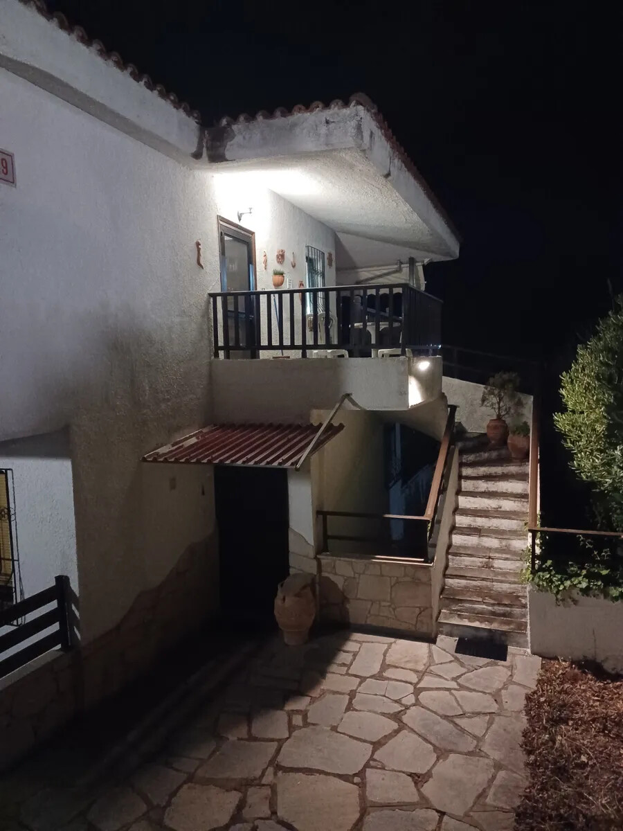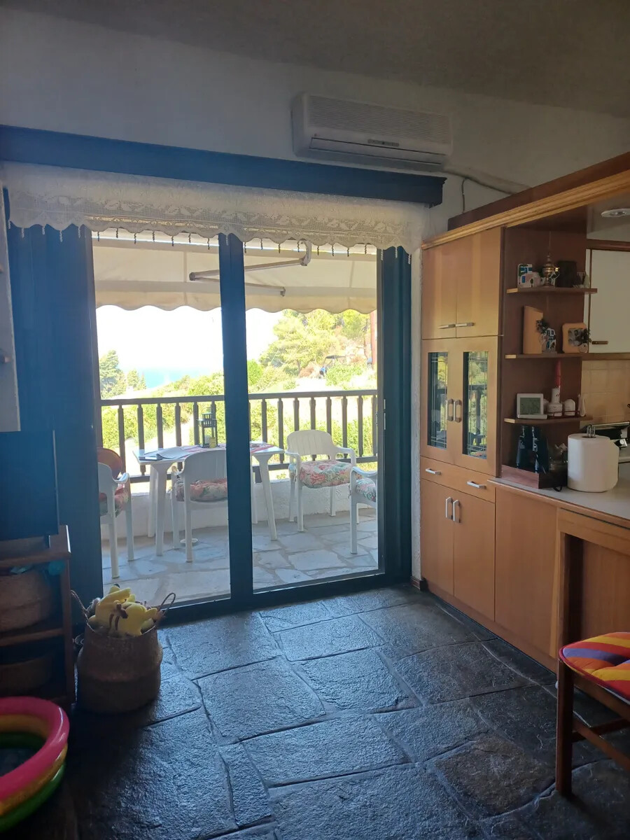 Продается квартира площадью 56 кв.м на полуострове Кассандра, региона Халкидики. Квартира расположена на втором этаже и состоит из 2 спальных комнат, гостиной с кухней, одной душевой комнаты. Из окон открывается вид на море, на лес. У объекта есть камин, кондиционер, тенты. Недвижимость продается с мебелью. В здании нет лифта. К недвижимости относится парковочное место.