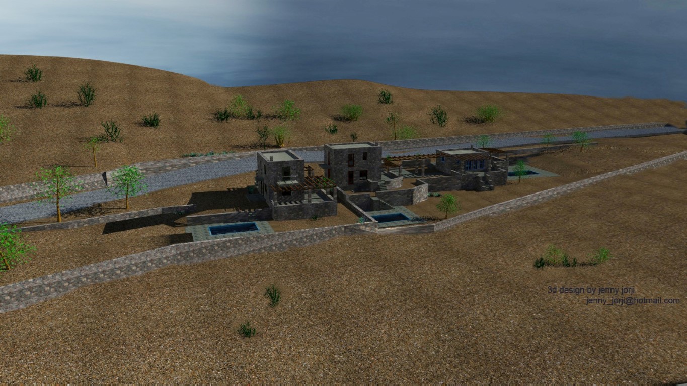 Оливковые, фисташковые и инжирные деревья, находящиеся на территории, помимо своей красоты, удобны в уходе. Для их роста требуется лишь небольшое количество воды. В каждом доме есть камин, большие веранды, автономное отопление на трех этажах. Также есть отдельный бассейн для каждого дома.