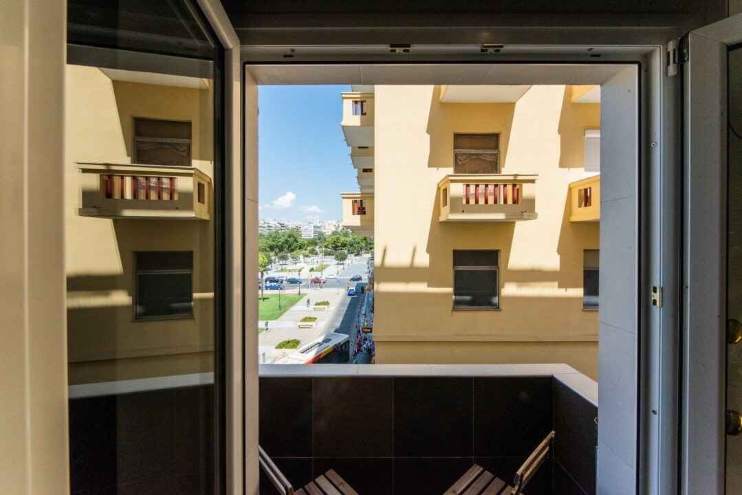 Продается квартира площадью 30 кв.м в Салониках. Квартира расположена на втором этаже и состоит из одной спальной комнаты, гостиной с кухней, одной душевой комнаты. Из окон открывается вид на город. У объекта есть кондиционер. Недвижимость продается с мебелью. В здании расположен лифт.