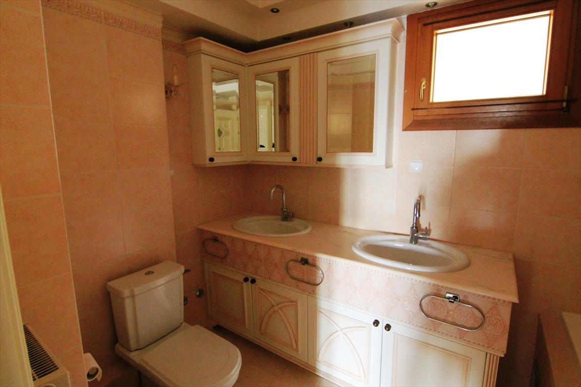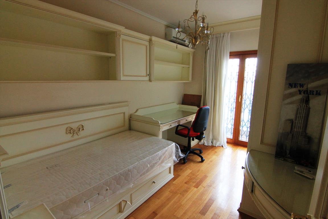 Продается квартира площадью 325 кв.м в Салониках. Квартира расположена на 2 уровнях. Первый этаж состоит из одной спальной комнаты, гостиной, одной кухни, одной душевой комнаты. Третий этаж состоит из 5 спальных комнат, гостиной, одной кухни, одной ванной комнаты, одной душевой комнаты, одного санузла. Квартира имеет угловое расположение. Из окон открывается вид на море, на горы, на город, на лес. У объекта есть солнечные батареи для нагрева воды, камин, кондиционер, тенты, зона барбекю, отопление. Недвижимость продается с мебелью. В здании расположен лифт. К недвижимости относится сад, гараж.
