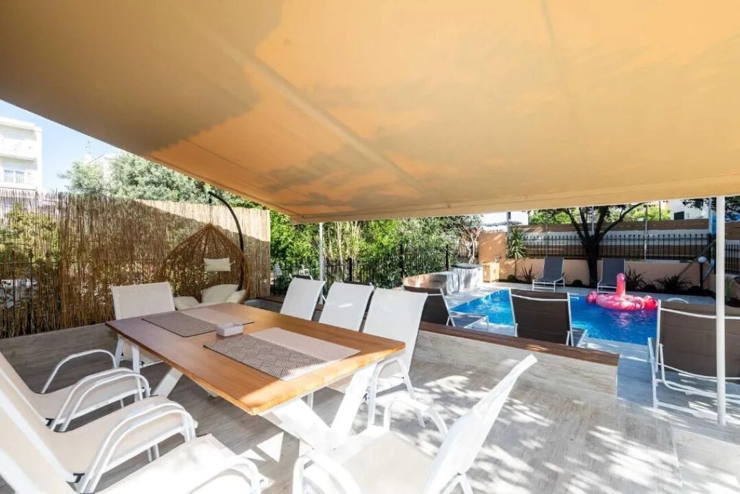 Продается 3-этажный коттедж площадью 220 кв.м в Салониках. Цокольный этаж состоит из гостиной с кухней, одной душевой комнаты, одной кладовой. Первый этаж состоит из одной спальной комнаты, гостиной, одной кухни, одной душевой комнаты. Второй этаж состоит из 3 спальных комнат, одной душевой комнаты. Из окон открывается вид на город. У объекта есть кондиционер, тенты, зона барбекю, отопление. Недвижимость продается с мебелью. К недвижимости относится парковочное место, сад, гараж. На территории расположен бассейн личного пользования.