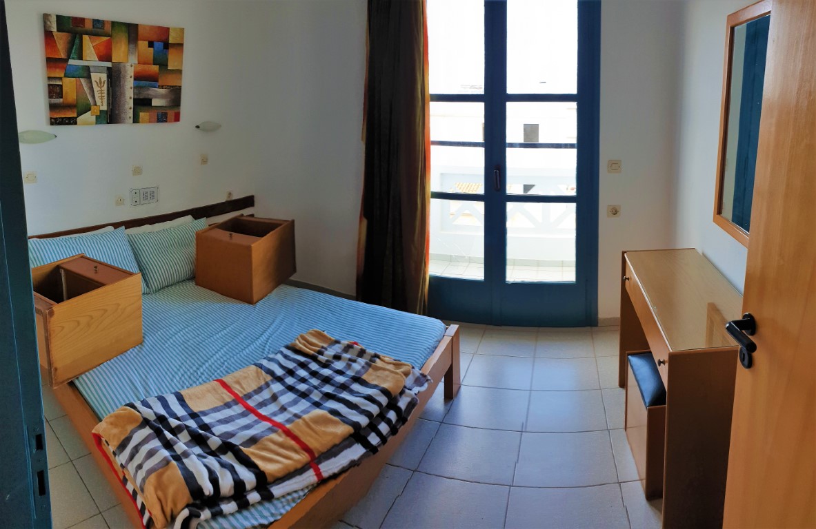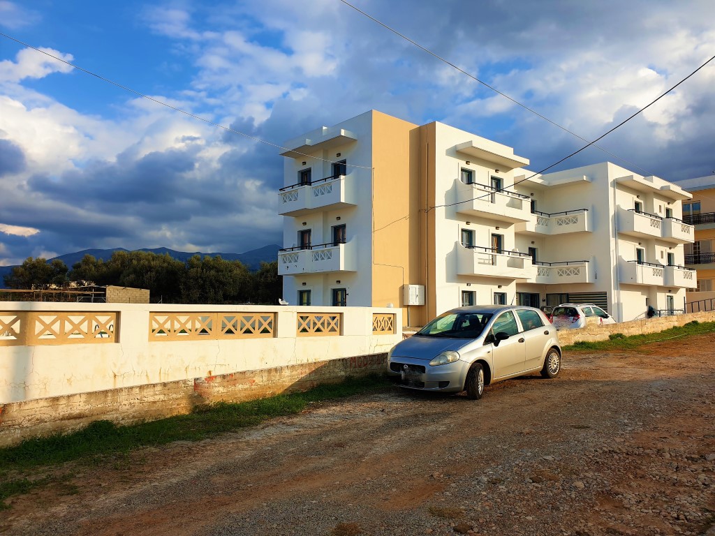 Состоит из трех этажей с 15 квартирами в общей сложности и внешней территорией с большим бассейном для общего пользования, баром у бассейна и местом для парковки двух автомобилей. Площадь каждого этажа составляет 200м2, первый этаж состоит из приемной, гостиной, двух туалетов, одной кладовой и трех квартир по 35м2 каждая. В каждой квартире есть общая зона с небольшой кухней, столовая с кроватью, туалетом с душем и отдельная спальня. Второй и третий этажи имеют площадь 200м2 каждый и включают три студии по 25м2 и три двухкомнатные квартиры по 35м2.
