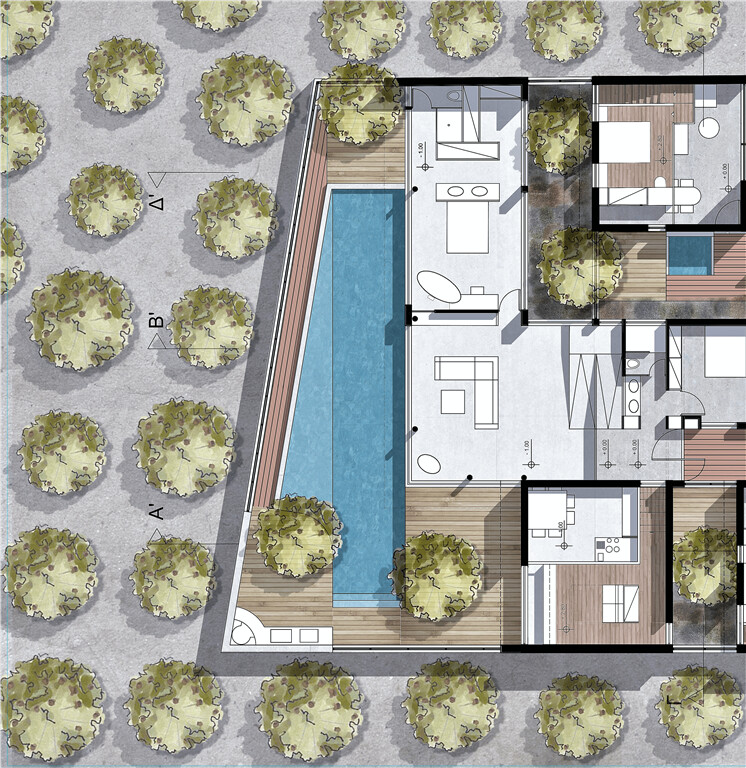 Каждая вилла имеет бассейн, джакузи и паркинг.