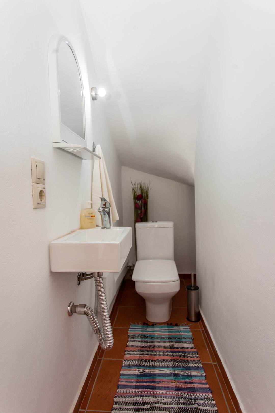 Обе виллы идентичны: на первом этаже находятся гостиная с кухней и туалет, а на втором — две спальни и ванная комната.