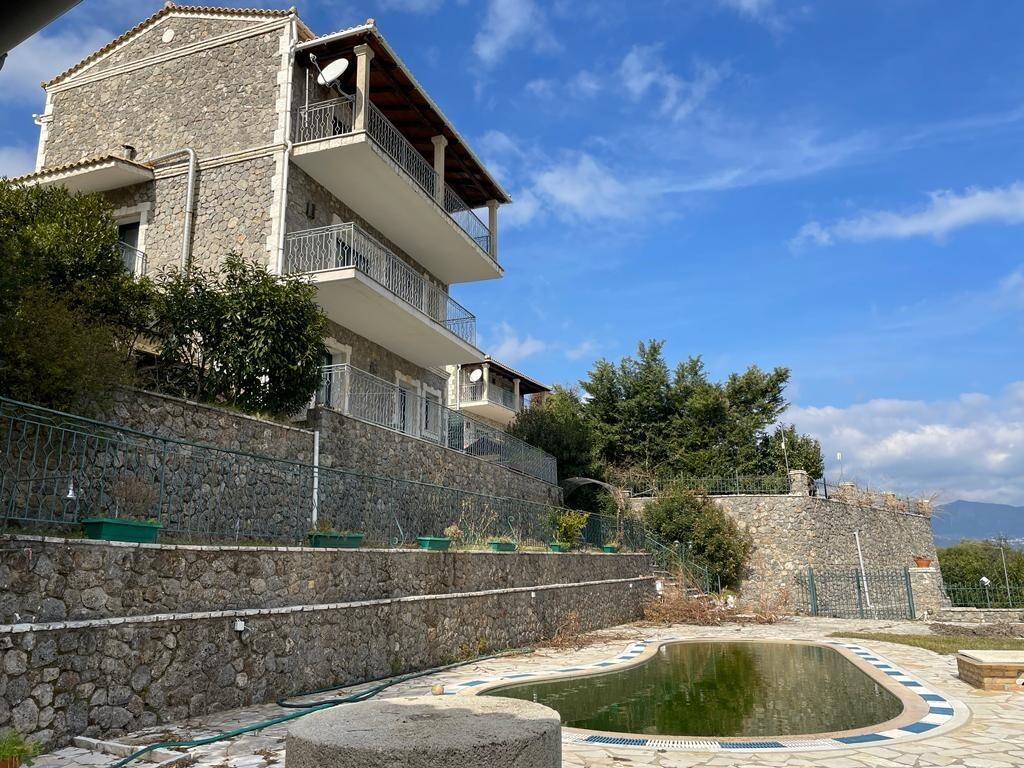 Продается 3-этажная вилла площадью 167 кв.м на острове Корфу. Первый этаж состоит из одной спальной комнаты, гостиной с кухней, одной ванной комнаты. Второй этаж состоит из гостиной с кухней, одной кухни, одной столовой, одного санузла. Третий этаж состоит из 2 спальных комнат, одной ванной комнаты, одной душевой комнаты. Из окон открывается великолепный вид на море, на горы, на город. У объекта есть зона барбекю, отопление. К недвижимости относится парковочное место, сад. На территории расположен бассейн личного пользования.