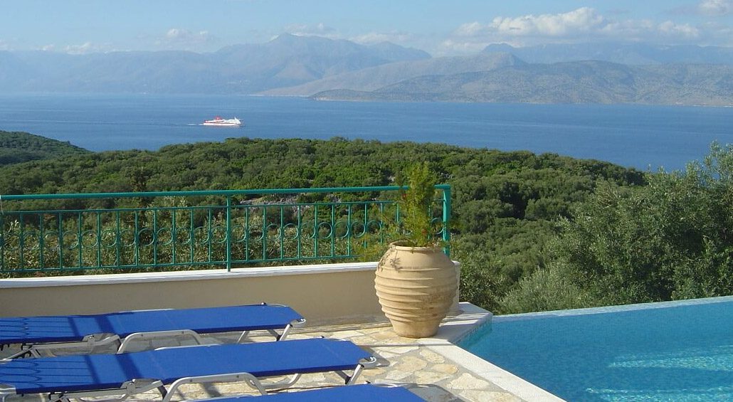 Продается 2-этажная вилла площадью 303 кв.м на острове Корфу. Первый этаж состоит из 2 спальных комнат, гостиной с кухней, 2 душевых комнат, одной кладовой. Второй этаж состоит из 3 спальных комнат, одной ванной комнаты, 2 душевых комнат. Из окон открывается великолепный вид на море, на горы, на город, на лес. У объекта есть камин, кондиционер, зона барбекю, отопление. Недвижимость продается с мебелью. К недвижимости относится парковочное место, сад. На территории расположен бассейн личного пользования.