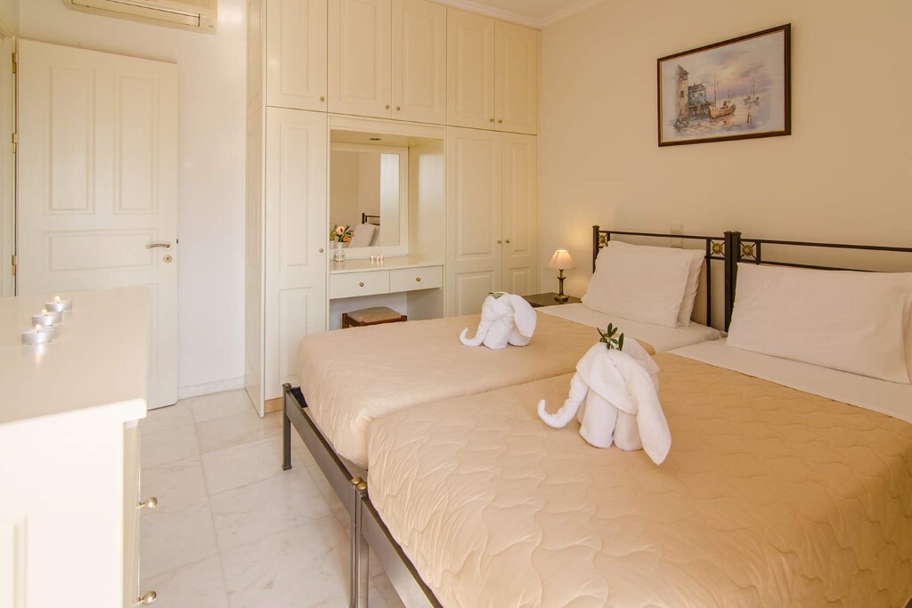 Продается 2-этажная вилла площадью 132 кв.м на острове Корфу. Первый этаж состоит из одной спальной комнаты, гостиной с кухней, одной ванной комнаты, джакузи. Второй этаж состоит из 2 спальных комнат, одной ванной комнаты, одной душевой комнаты, джакузи. Из окон открывается вид на горы, на лес. У объекта есть камин, кондиционер, зона барбекю. Недвижимость продается с мебелью. К недвижимости относится парковочное место. На территории расположен бассейн личного пользования.