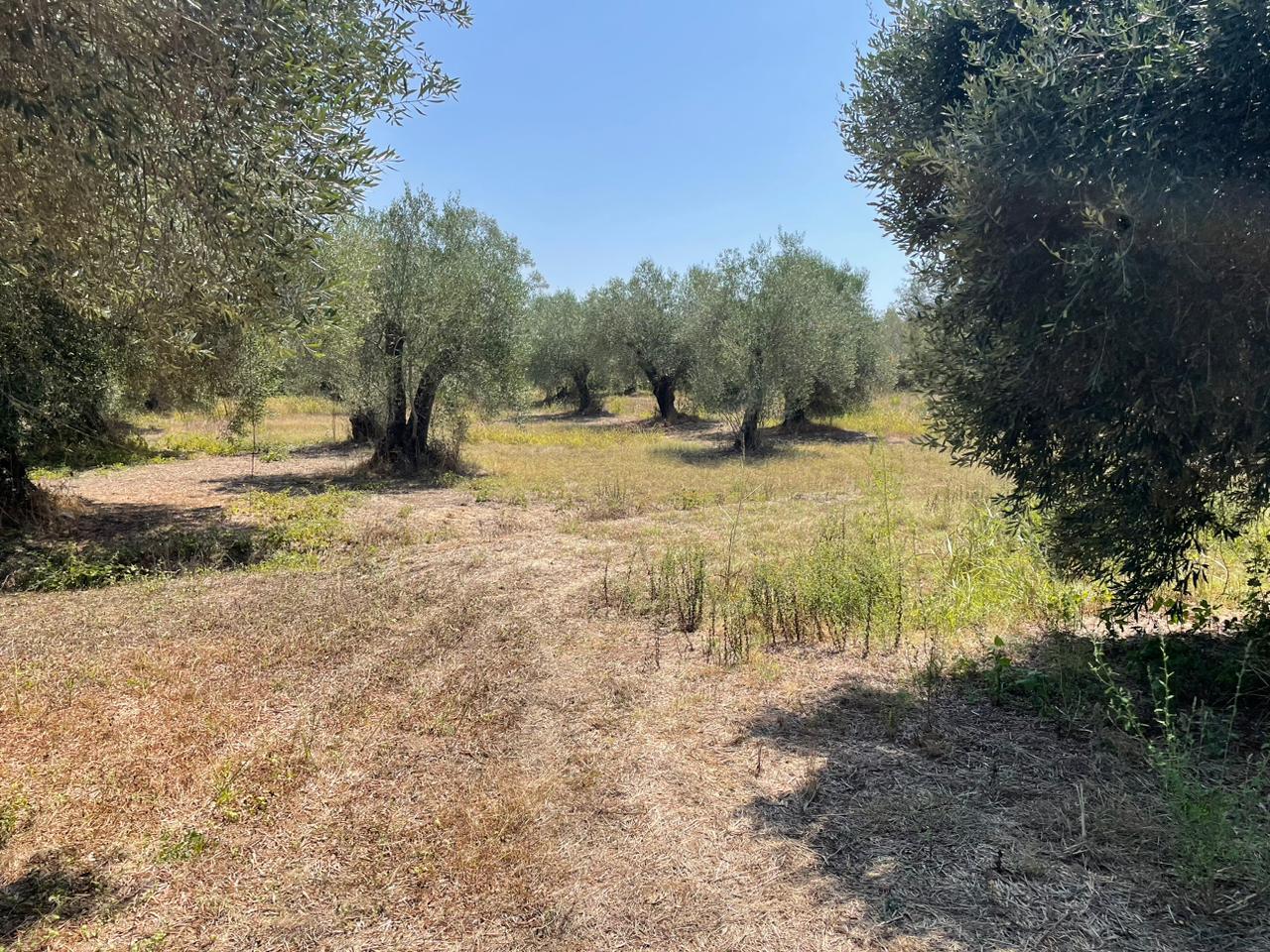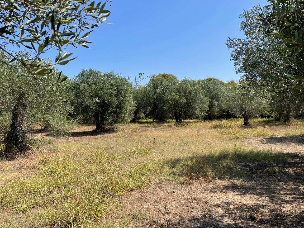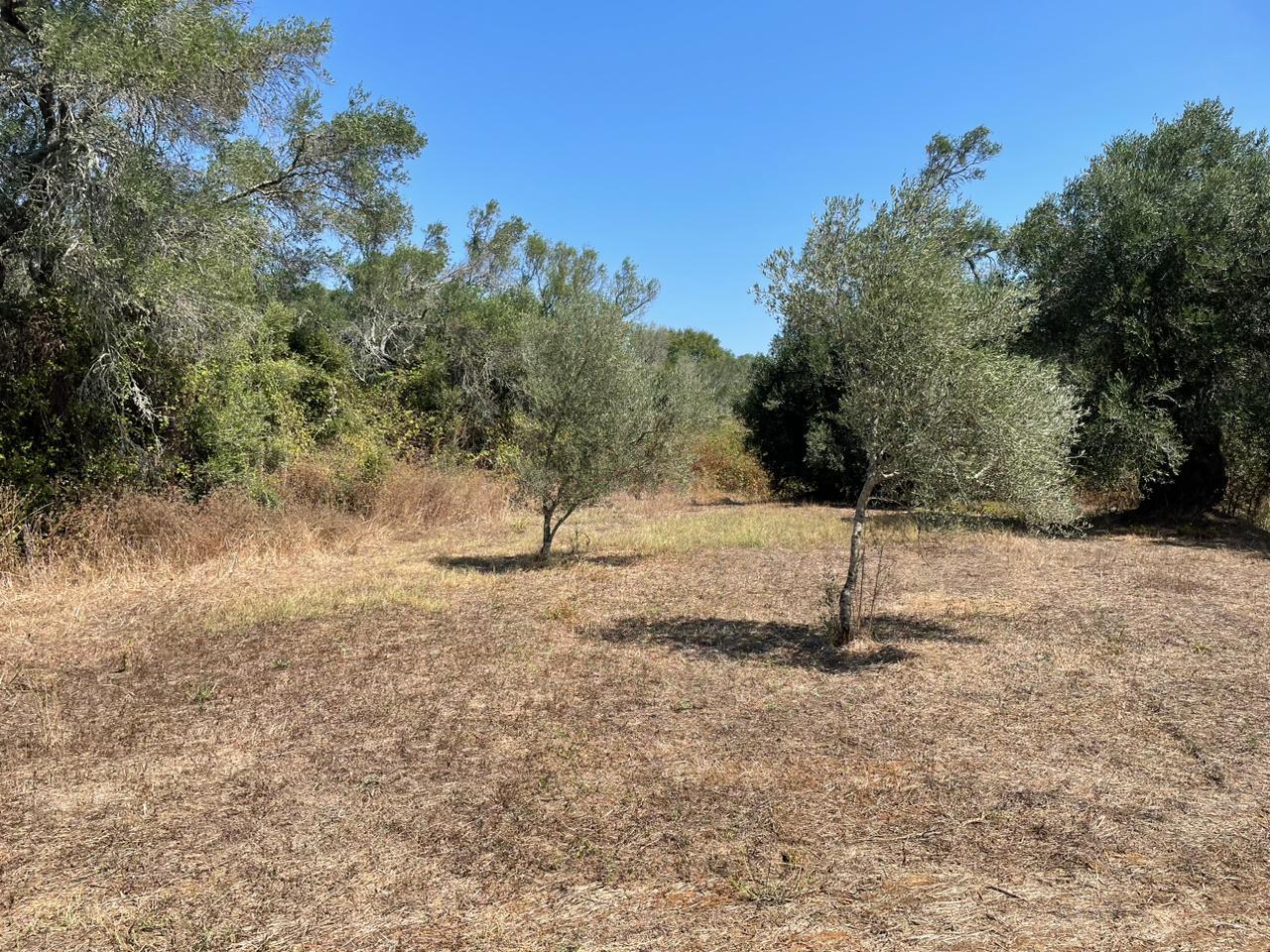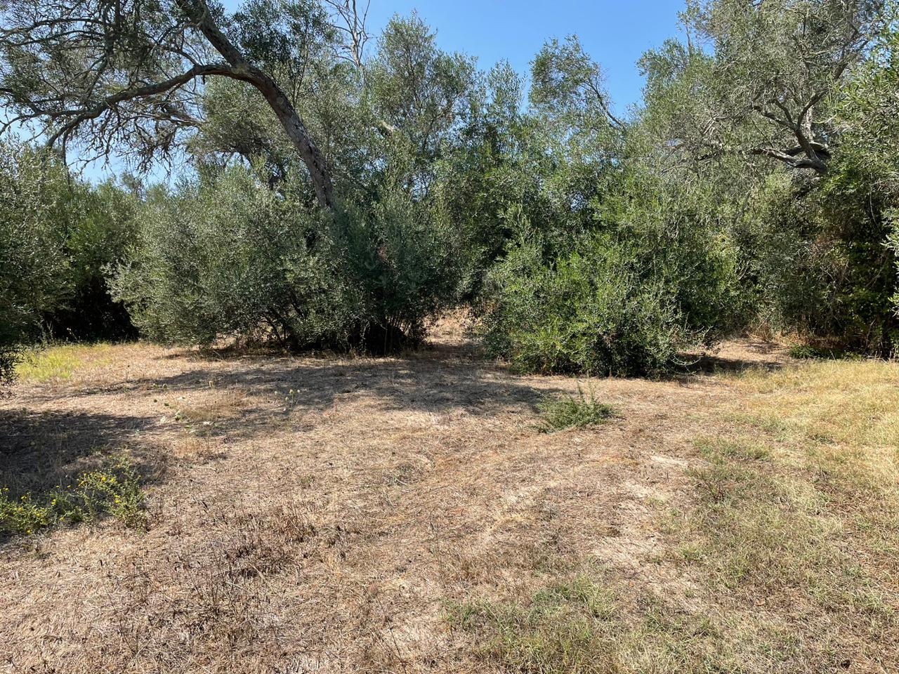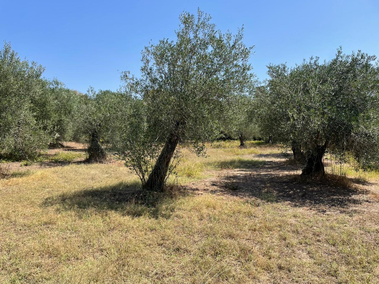 Участок ровный, на нем растут оливковые деревья.
