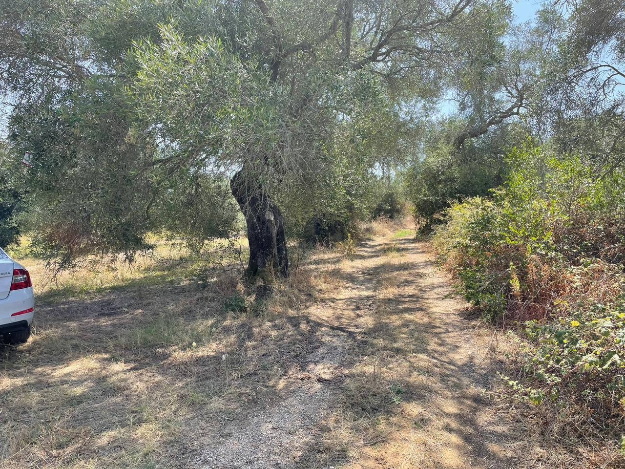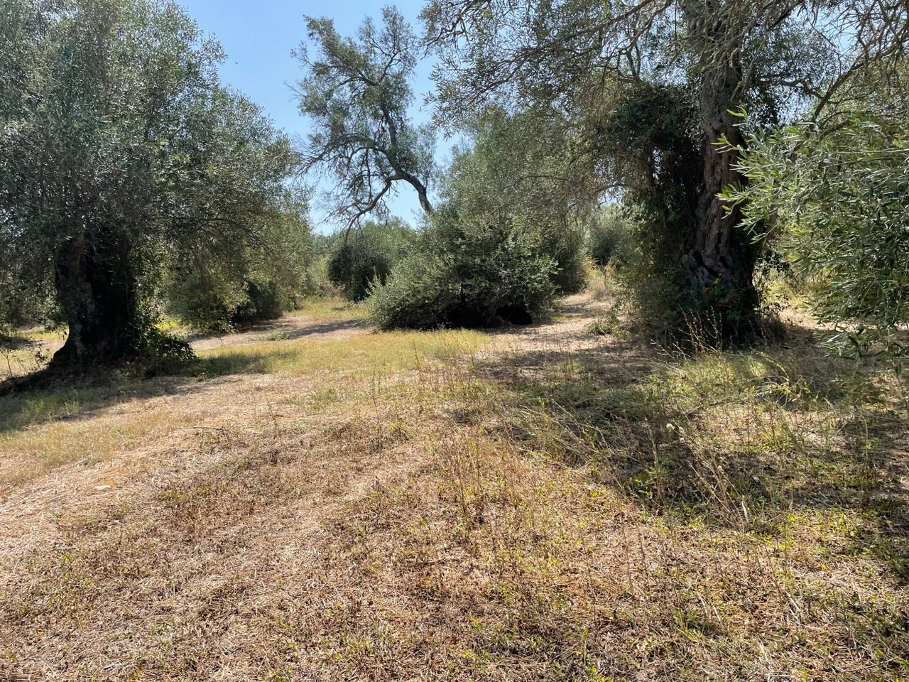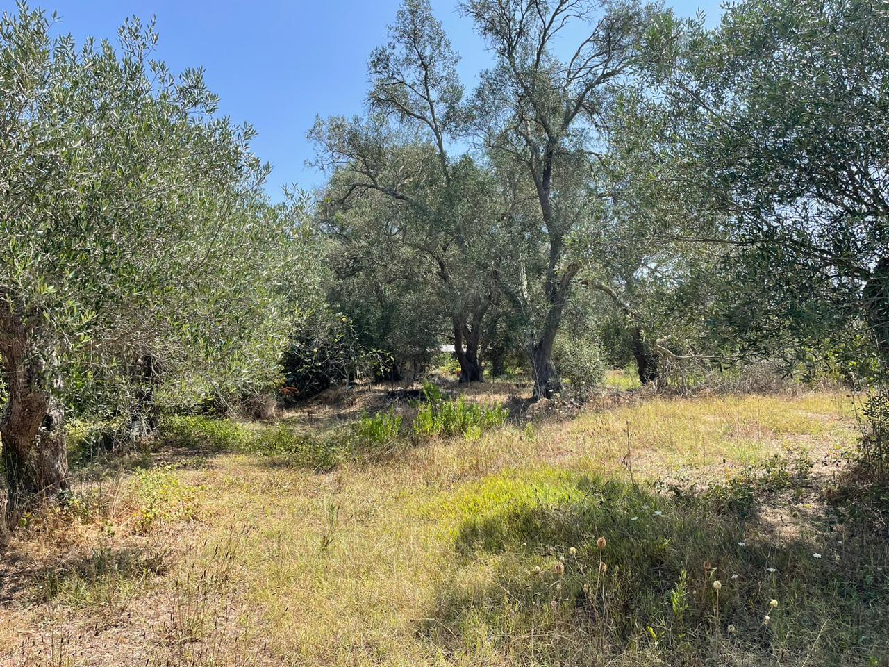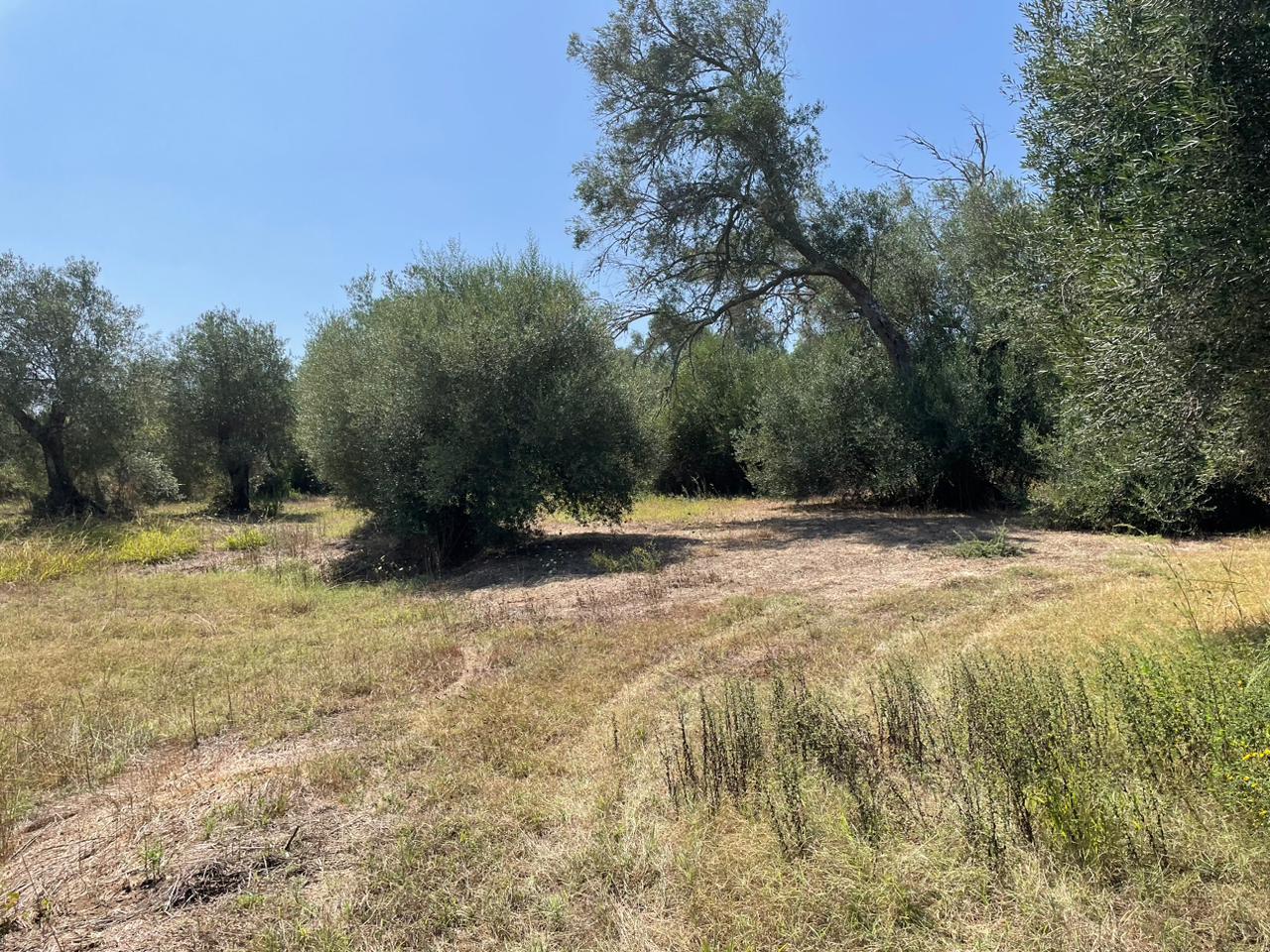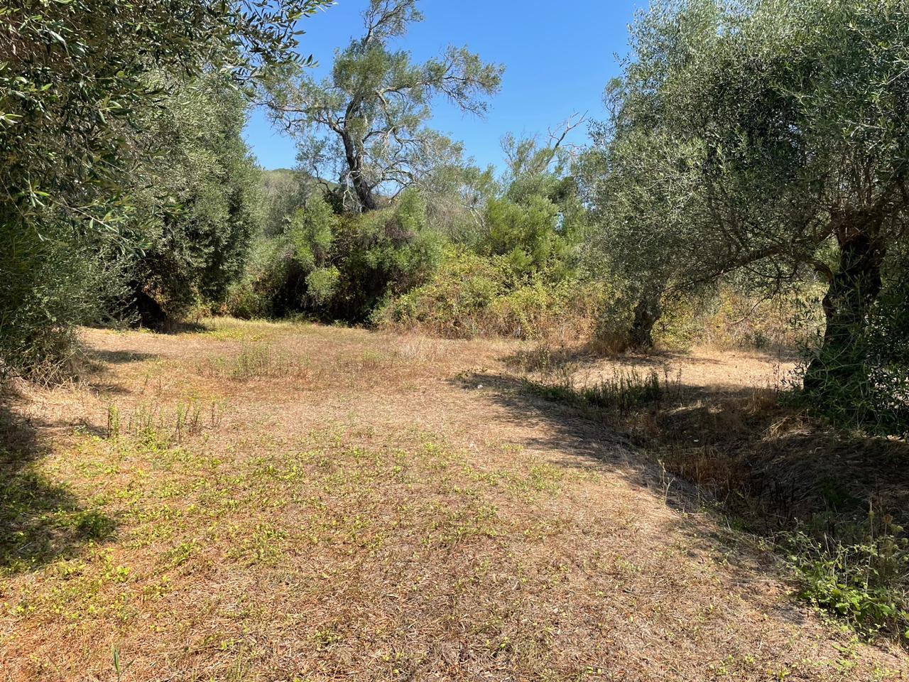 Участок ровный, на нем растут оливковые деревья.