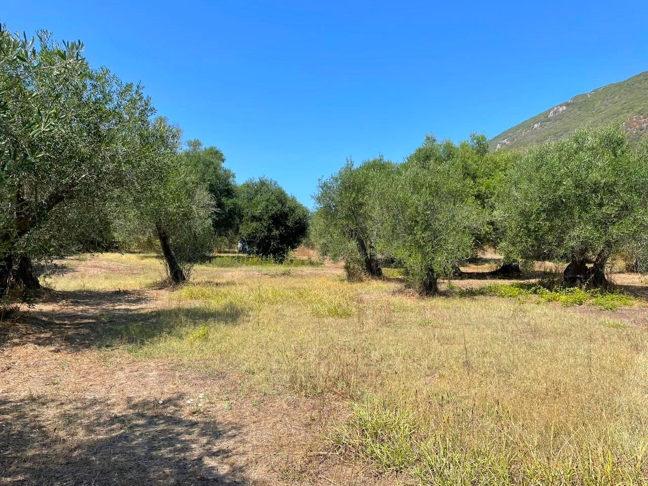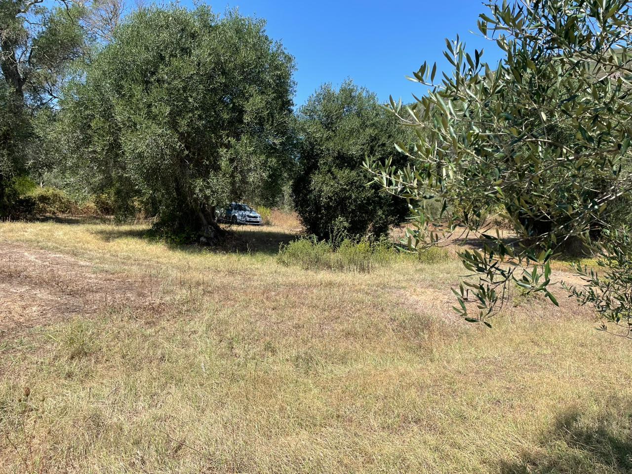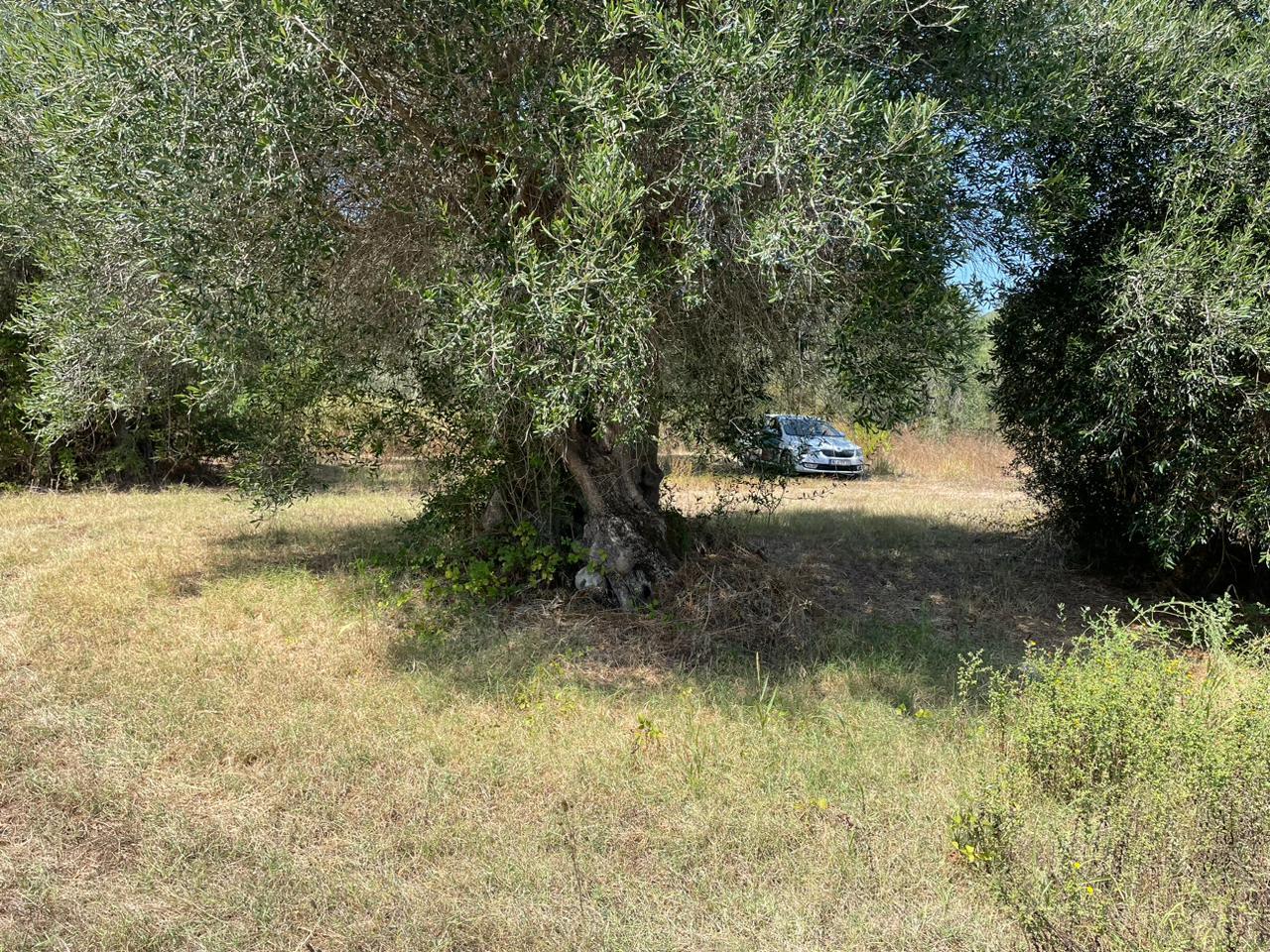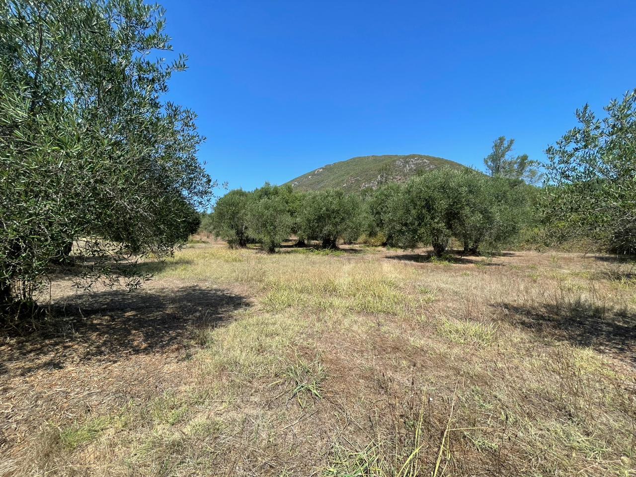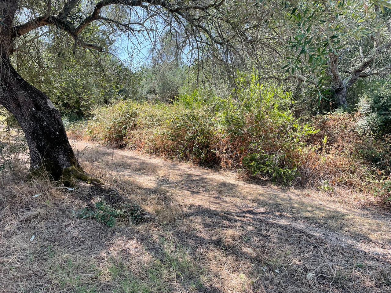 Участок ровный, на нем растут оливковые деревья.