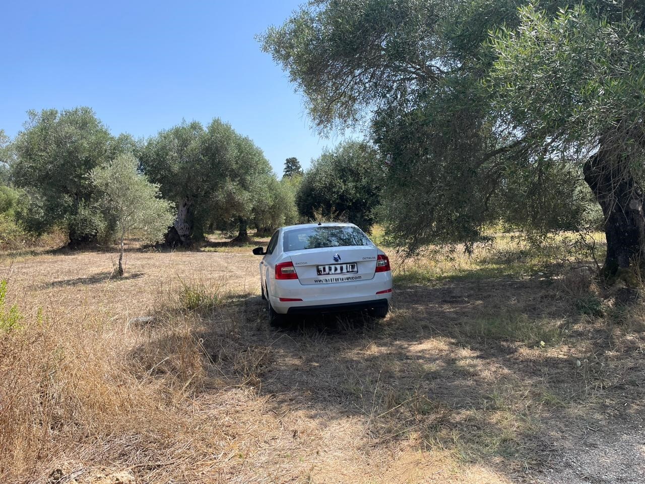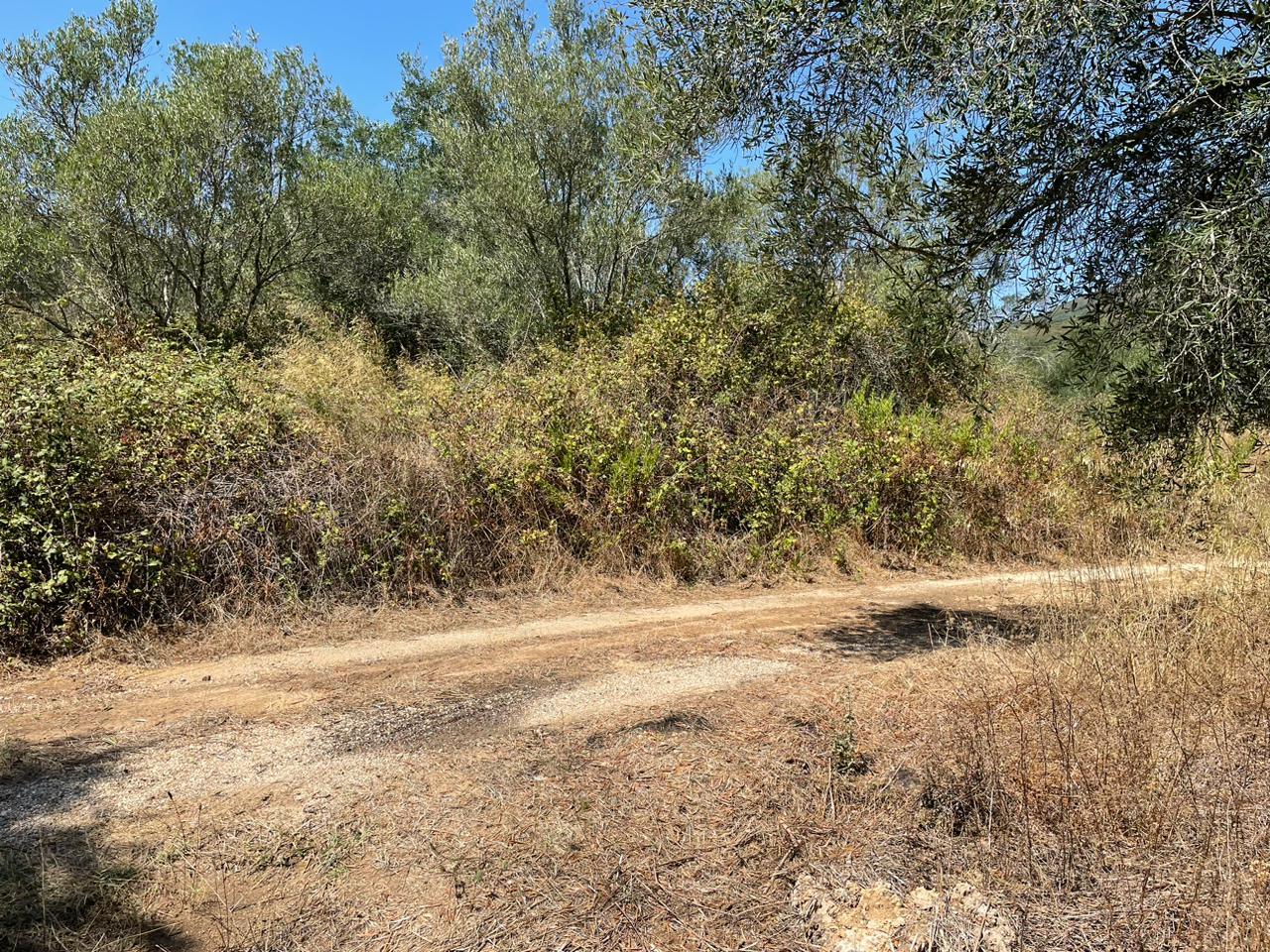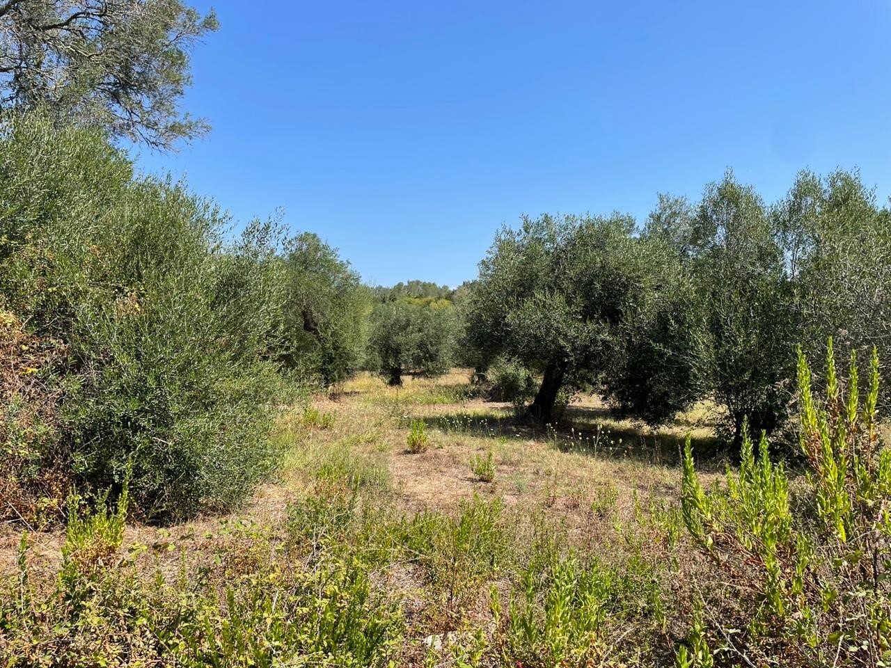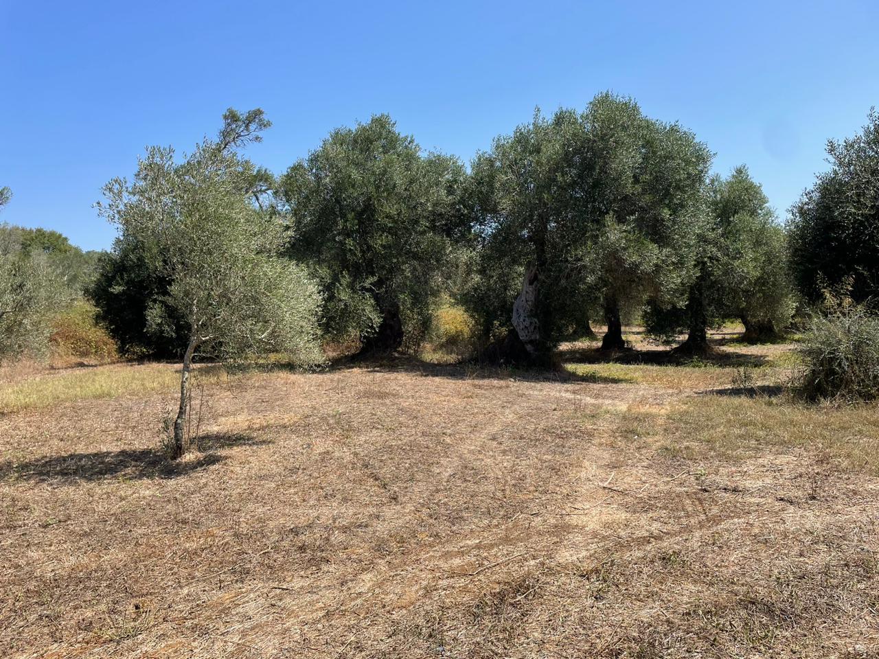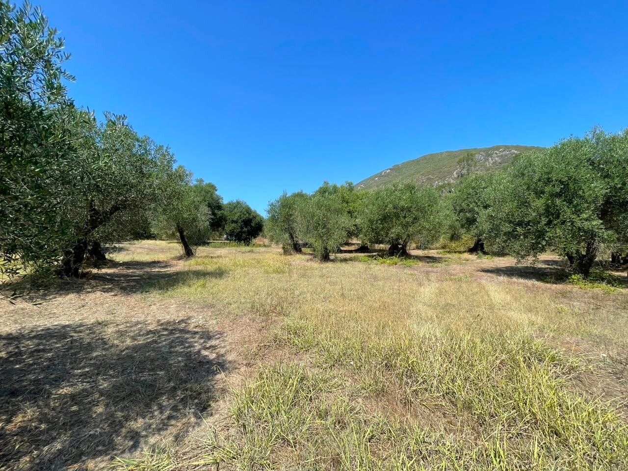 Участок ровный, на нем растут оливковые деревья.