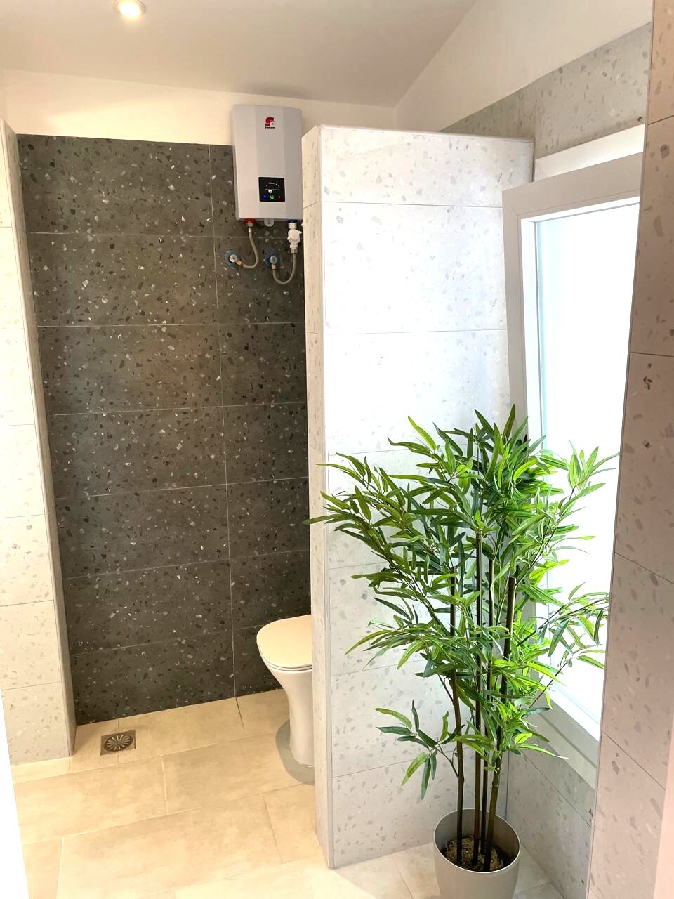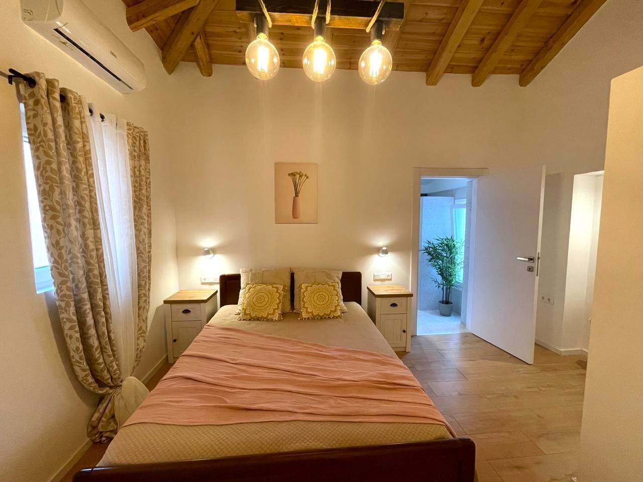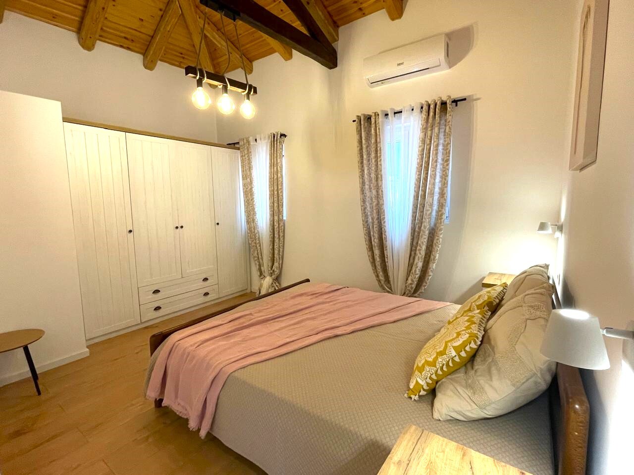 В каждой комнате есть кондиционеры, также установлены солнечные батареи для нагрева воды и фильтры для воды.